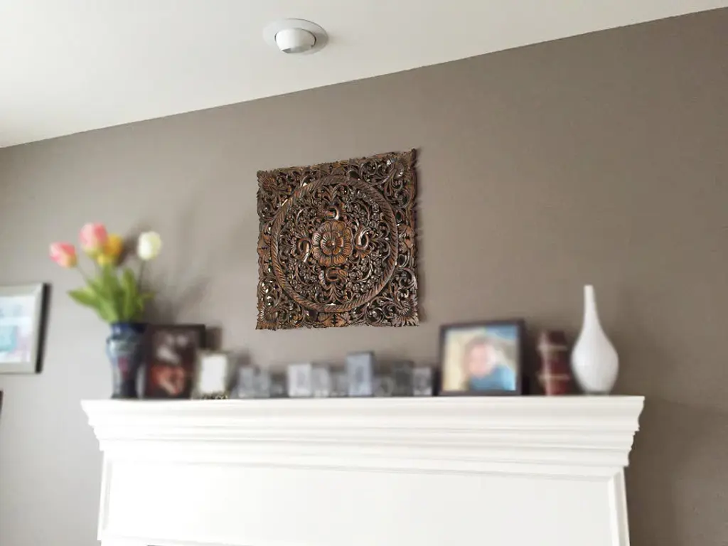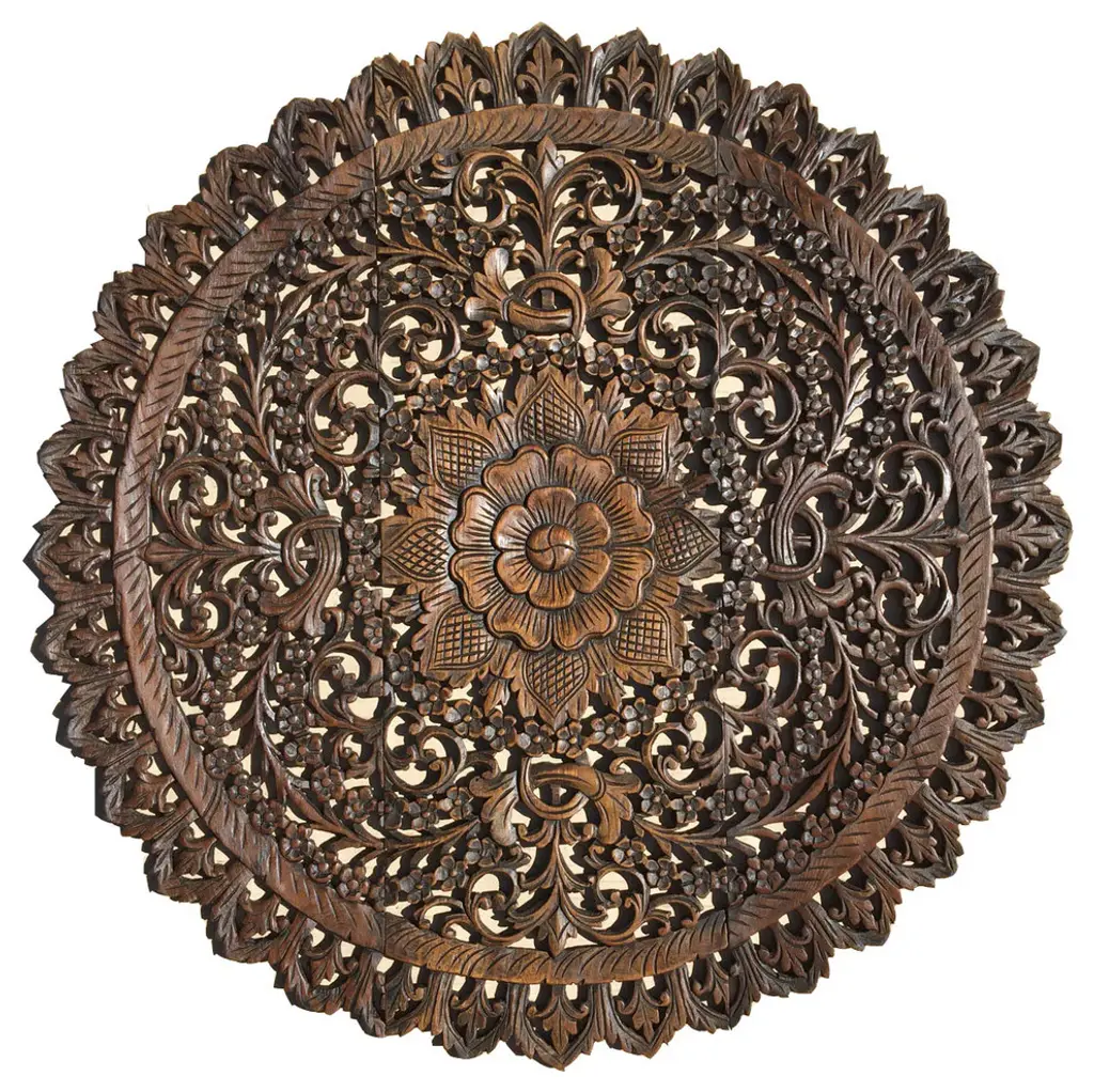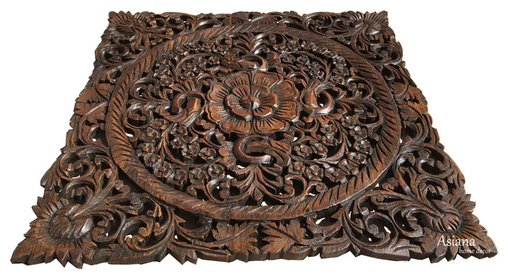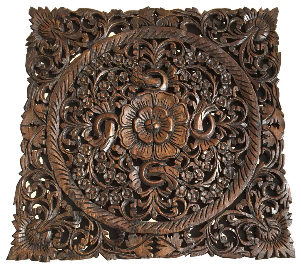 Oriental Carved Lotus Wood Plaque. Asian Carving Wood Decor. Large Square Floral Wood Wall Hanging. Rustic Wall Decor. Dark Brown Finish Size 24"x24"x0.5"Beautify your wall with this decorative floral design. Made from teak wood. This oriental carved wood plaque will add a captivating elegance to your room.Size • Weight • Color • MaterialsHeight: 24 InchesWidth: 24 InchesThickness: 0.5 InchesWeight: 5.5 lbs.Available Color: BrownMaterial: Teak Wood• Please note that you may see a slight difference in color as compared to that seen on your computer screen. Also, since most products are handmade and they are crafted from natural wood, there may be a slight size variation. About Teak Wood: Wood texture is hard and durable. Being used for furniture, carving, exterior construction etc. Teak wood is ideal quality material for carving these treasures.Our exotic handmade wall pieces will bring warmth and character to any room in your home!