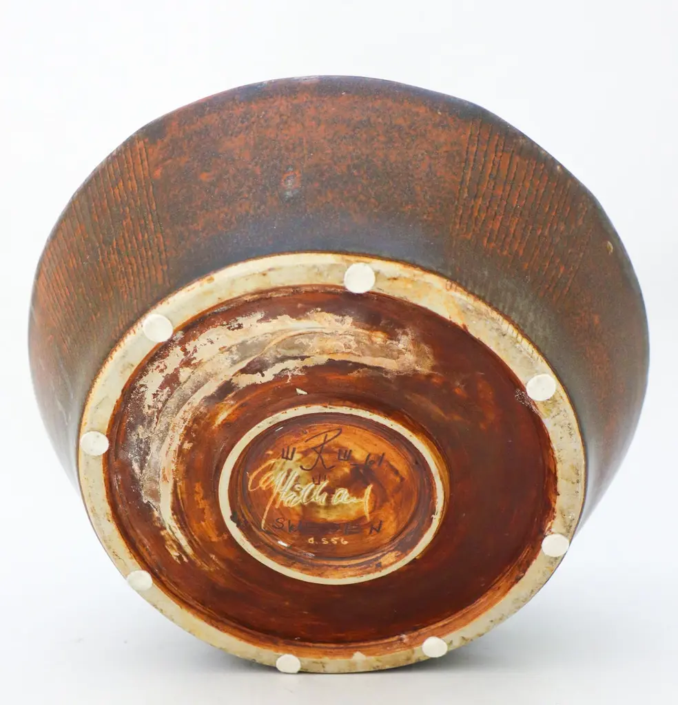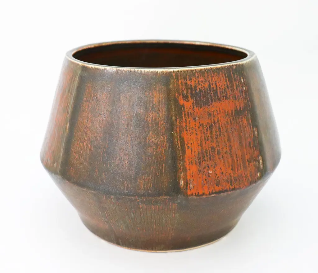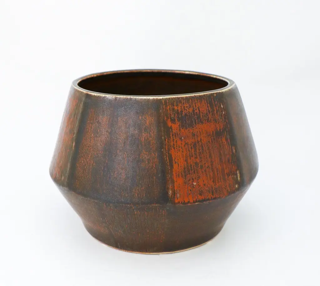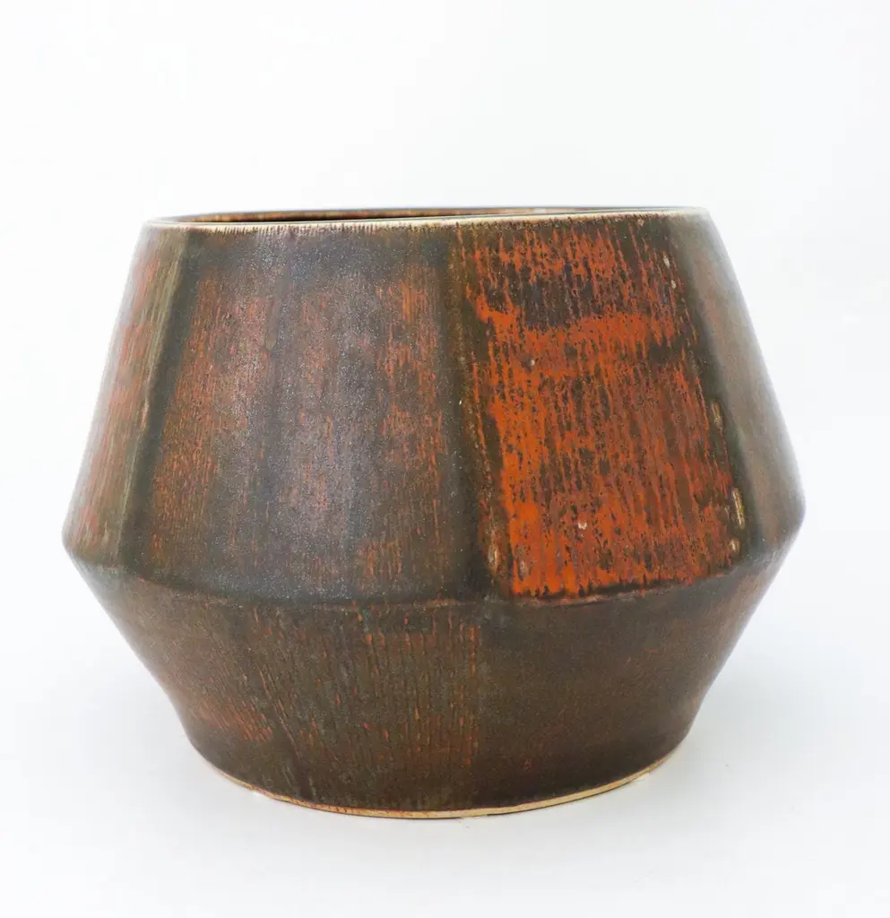 A large unique brown flower pot or bowl designed by Carl-Harry Stålhane at Rörstrand, it is 27,5 cm (11") in diameter and 19 cm (7.6") high. It is in excellent condition. This bowl was produced by Carl-Harry Stålhane in 1961. Carl-Harry Stålhane is one of the top names when it comes to midcentury Scandinavian Ceramics. He was the artistic director of Rörstrand from 1950 until 1973. His sheer and elegant stoneware vases from the 1950s with speckled eggshell-like and harfur glazes in muted shades have received a marked increase in demand in recent years and are often included in international interiors and collection. His artworks are represented at MoMA in New York as well as Victorian and Albert Museum in London.