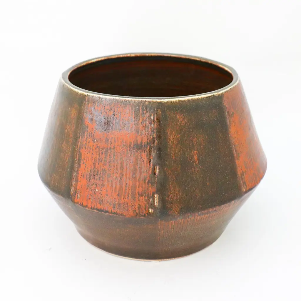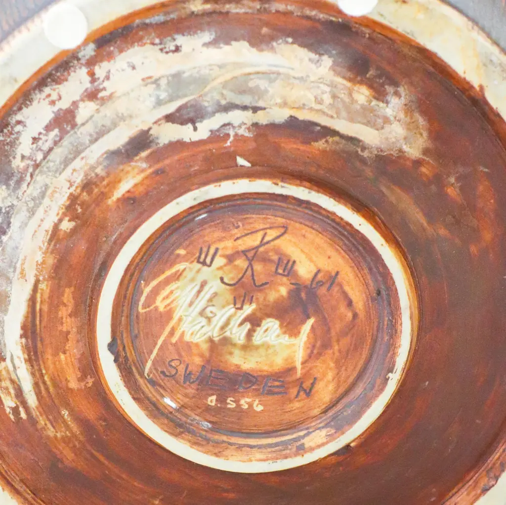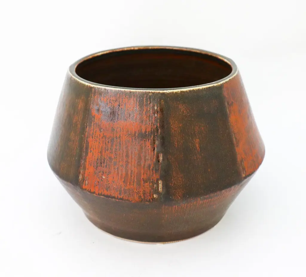 A large unique brown flower pot or bowl designed by Carl-Harry Stålhane at Rörstrand, it is 27,5 cm (11") in diameter and 19 cm (7.6") high. It is in excellent condition. This bowl was produced by Carl-Harry Stålhane in 1961. Carl-Harry Stålhane is one of the top names when it comes to midcentury Scandinavian Ceramics. He was the artistic director of Rörstrand from 1950 until 1973. His sheer and elegant stoneware vases from the 1950s with speckled eggshell-like and harfur glazes in muted shades have received a marked increase in demand in recent years and are often included in international interiors and collection. His artworks are represented at MoMA in New York as well as Victorian and Albert Museum in London.
