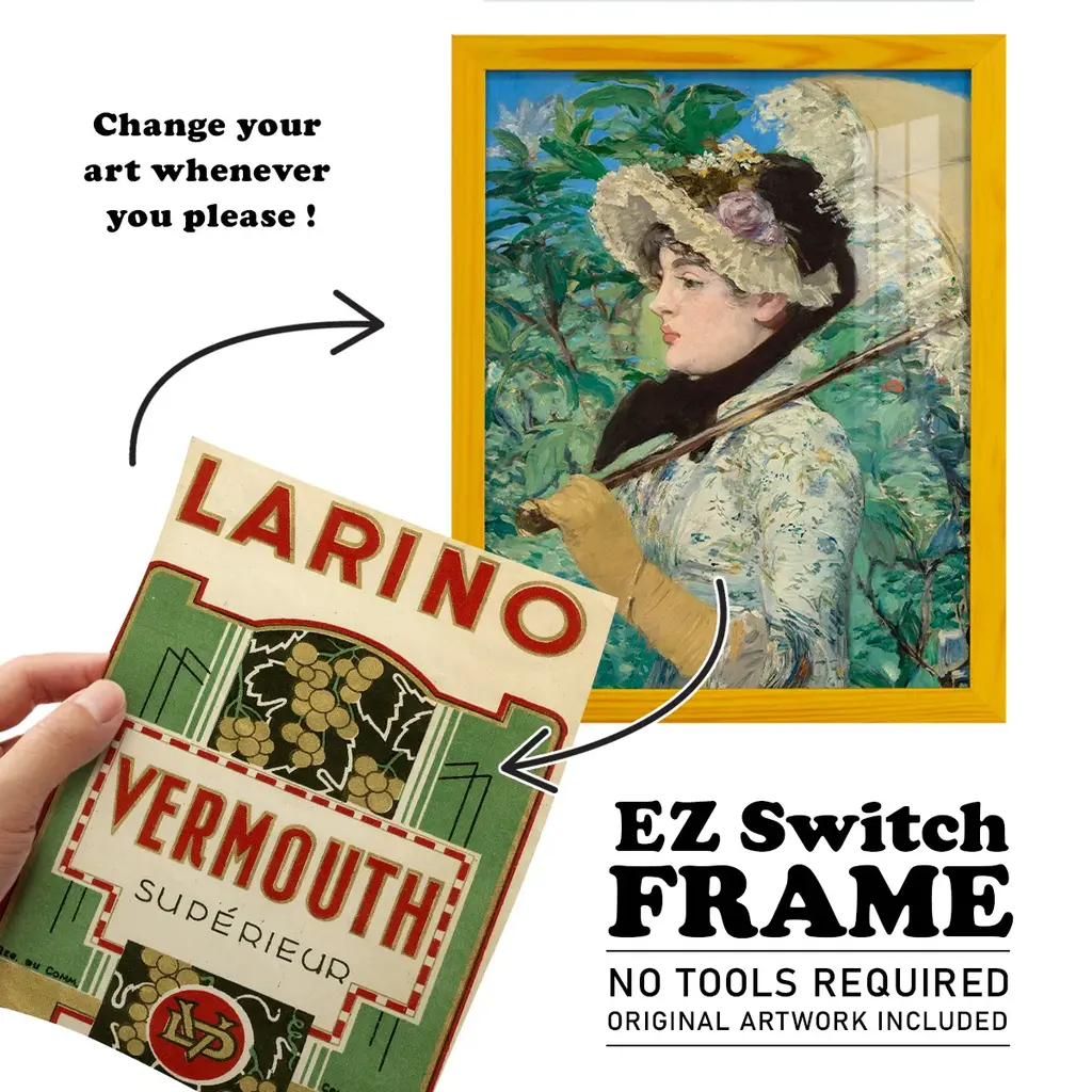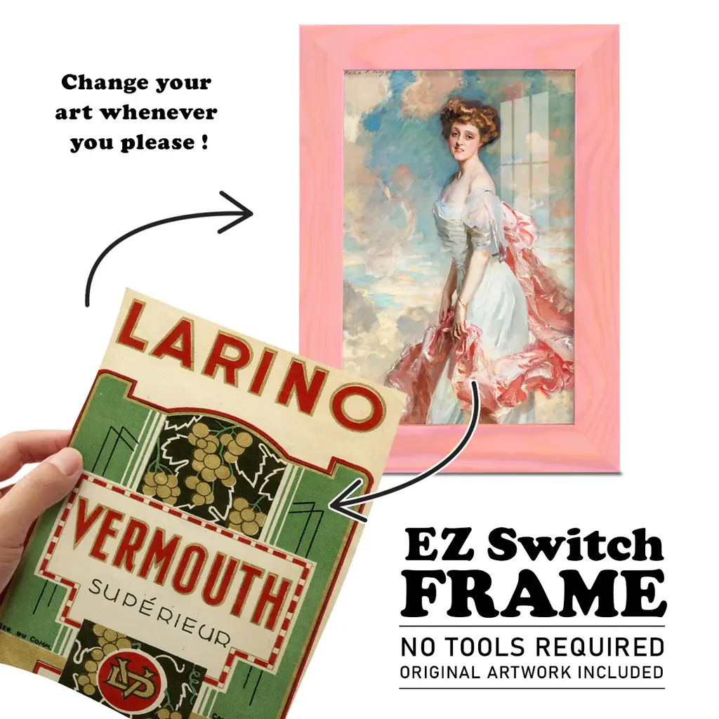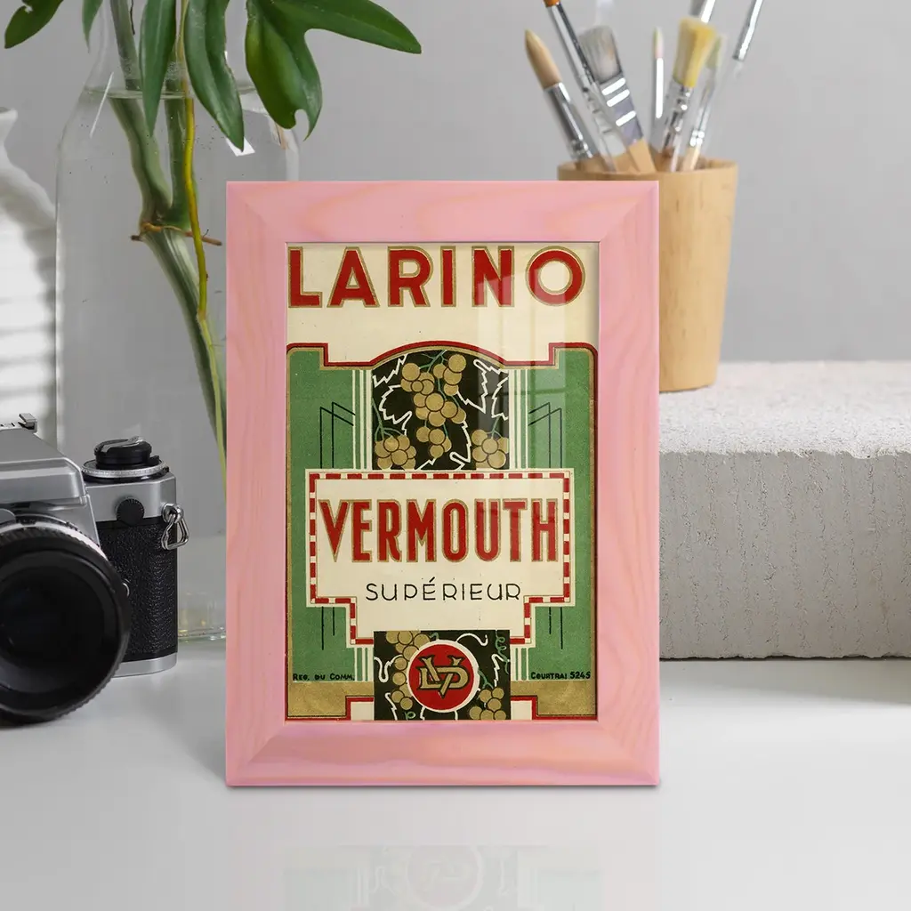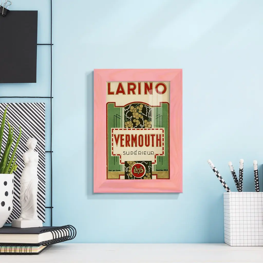 Larino Vermouth -EZ SWITCH Framed Print w/glass-Cherry Red A delightful, framed print. Featuring a solid wood frame with real wood glass. This premium print is giclee quality. In addition, every frame features a removable back and table top stand. This allows you to change your art in the future or to just stand the art on a table for a new look. We are sure you'll enjoy our new series of EZ SWITCH Framed Art. Solid Wood Frame Real Glass Removable / Replaceable Art Built in Tabletop Stand Sizes range from 4x6 up to 12x15 - buy just one or pair them up as sets as you see fit.