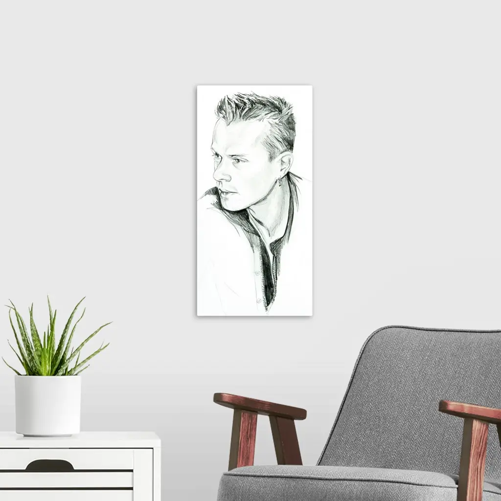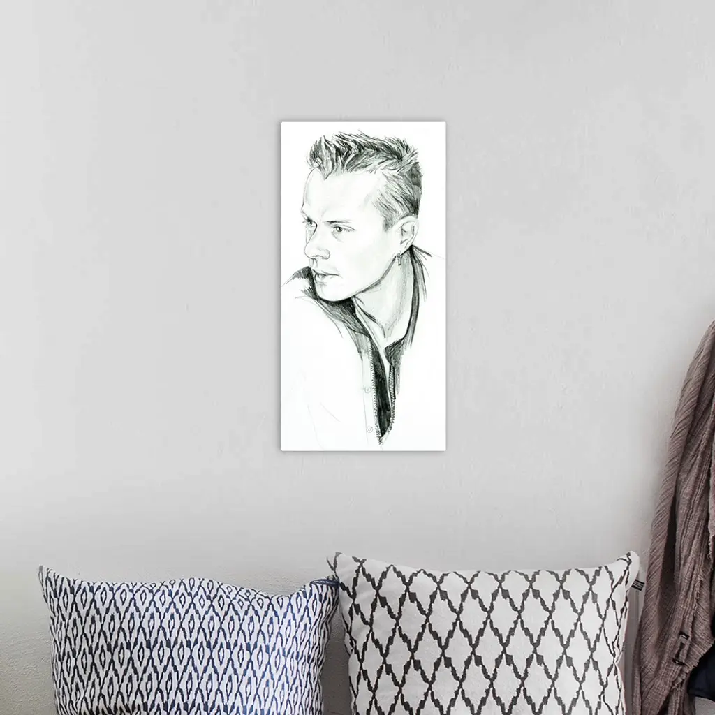 Pencil drawing of the ageless Larry Mullen Jr of U2.