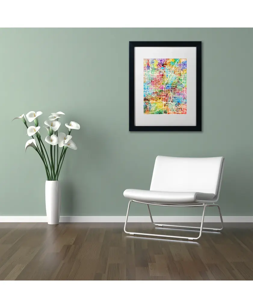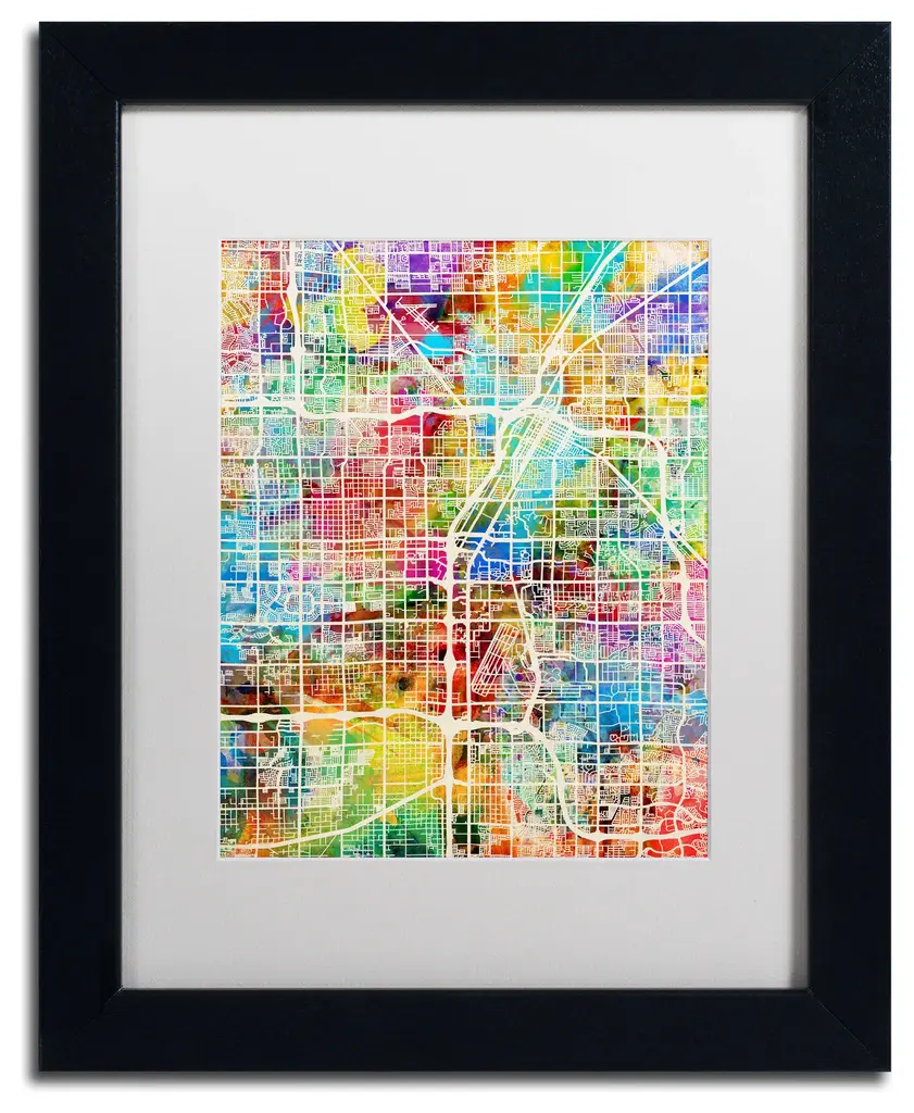 Title: Las Vegas City Street MapArtist: Michael TompsettProduct Type: Matted Framed Canvas ArtSize: 11" x 14"Matte Color: WhiteFrame Color: BlackMade in the USA.Art and design were always Michael's favorite subjects at school. He was fortunate to land a job as a graphic designer at one of London's most prestigious publishing companies after leaving University. After 12 highly enjoyable years Michael Tompsett made the decision to pursue a full-time career creating his own work. The freedom and time to be able to focus solely on his own projects has been a wonderful experience. Although Michael likes to experiment with different styles and subjects, his main focus is on map art. He enjoys looking for unique and interesting ways to depict something which is very familiar. Maps are visual representations of the world we live in, a world which is incredibly diverse. Apart from maps, Michael Tompsett creates urban landmark and cityscape designs.An 8" x 10" giclee print under acrilyic in an 11" x 14" Black Frame. Giclee (jee-clay) is an advanced printmaking process for creating museum quality fine art reproductions. This high quality print is matted using White Matting and comes in a Black Frame. A clear acrylic facing is added to protect the print. The piece is fully assembled by professional framers and comes ready to hang.