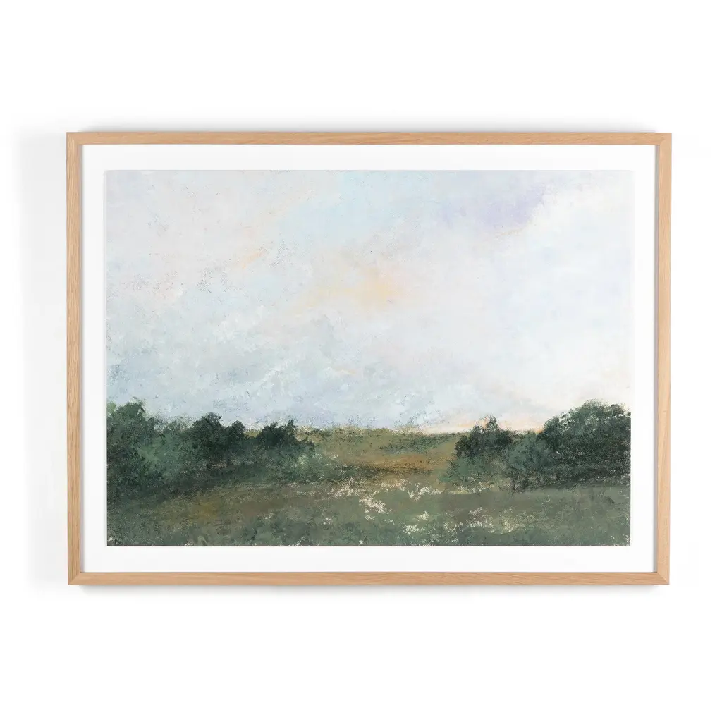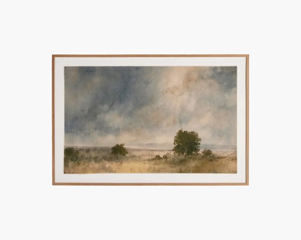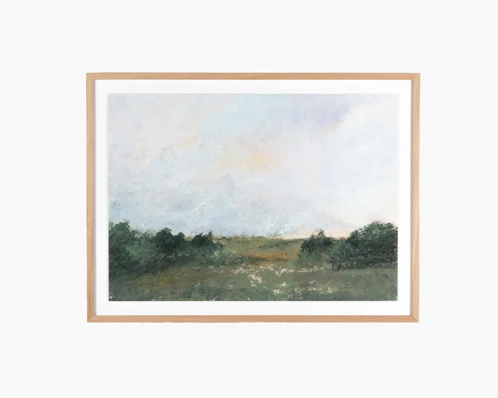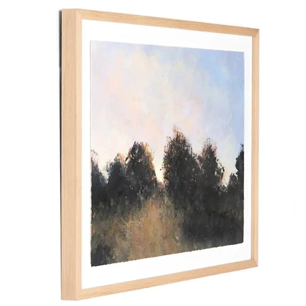 The Last Light Wall Art from Four Hands was designed by artist Aileen Fitzgerald. This artwork beautifully showcases a serene landscape, creating a contemporary and nature-inspired aesthetic. Crafted with care, Last Light features high-quality materials, including textured fine art paper and acrylic glazing. The frame is made from vertical grain white oak.