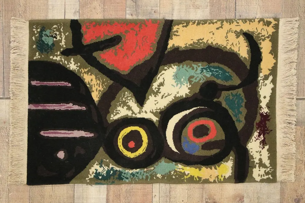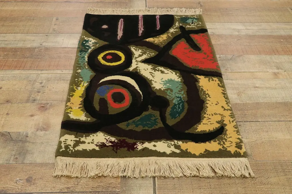 Late 20th Century Surrealist Carpet Inspired By Joan Miró, Femme Et Oiseaux