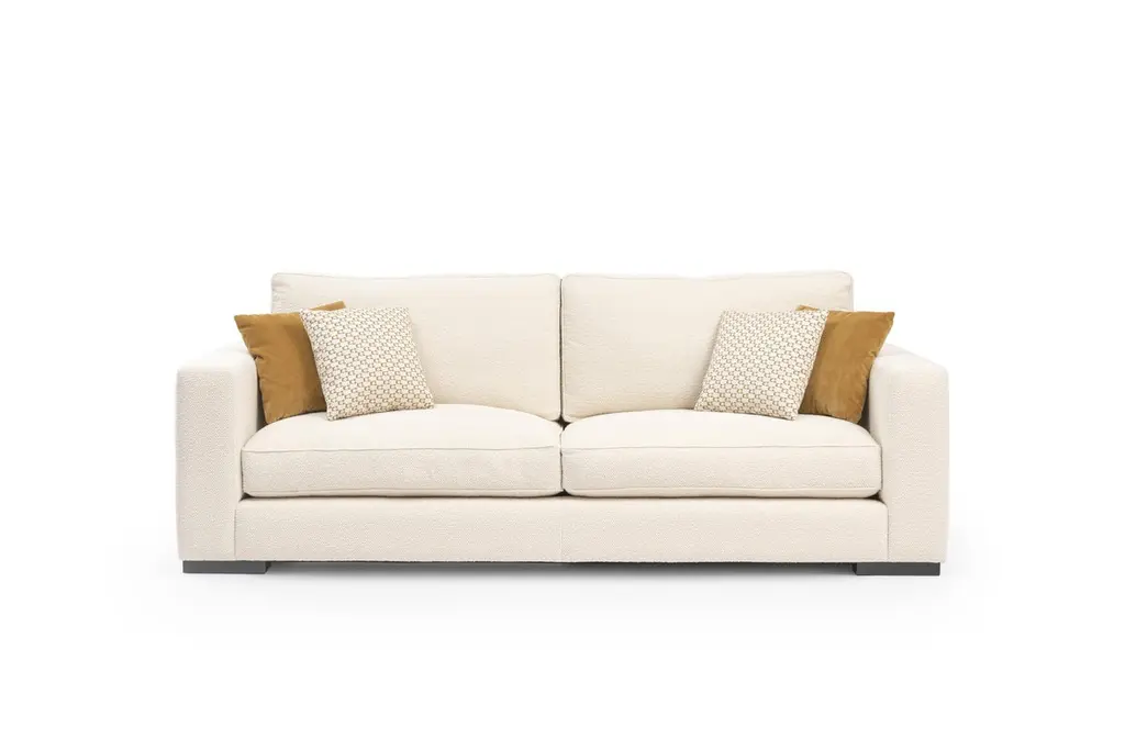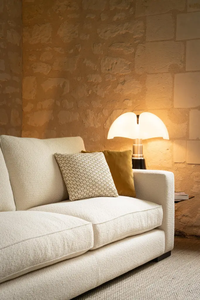 Latitude Sofa by RALPH MDimensions: W 260 x D 90 x H 89 cm. Materials: Solid beech, Particle boards panels, Fabric.Details: Frame: Solid beech and particle boards panels.Seat springing: Steel springs secured by silent clips beneath insulating felt.Seat Cushion: High resilience 30kg/m3 foam wrapped in quilting filled with feathers and silicone hollow fibre beneath quilted percal cotton.Back Cushion: Mixture of feathers and silicone hollow fibre beneath quilted percal cotton.Seat cushion fixings: Zip fastener and buttons.Finish: Single overstitching on frame and piping on cushions.Feet: Solid beech.Ralph M:In its French workshop, Ralph M. creates and crafts personalisable top-quality sofas and armchairs. A bold challenge. And one achieved successfully for more than 30 years. The Ralph M. team fulfils the essential challenge of the Made in France label: guaranteed quality through the ability to combine the best materials with expertise and open-minded flexibility.For more than 30 years, Ralph M. has used its expertise and attention to detail in creating pieces that draw on the latest trends in furniture. But they also enjoy exercising their own bold originality. In fact, they like it so much that they always want to go further in asserting their unique aesthetic.The new RALPH M. range embodies their desire to take creative risks and enhance the standard pieces of the furniture repertoire by revisiting them.They believe that design is as valid an artistic expression as literature, painting and music. The RALPH M. brand makes everything possible. It is in many ways our laboratory in which luxury, comfort and good design come together to create timeless pieces with their own distinct identity.