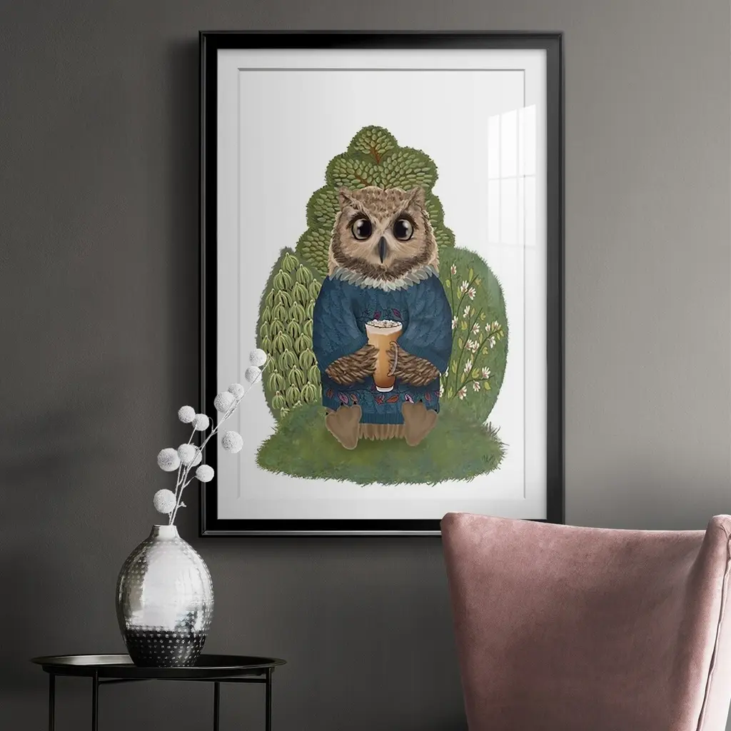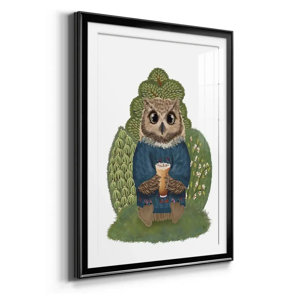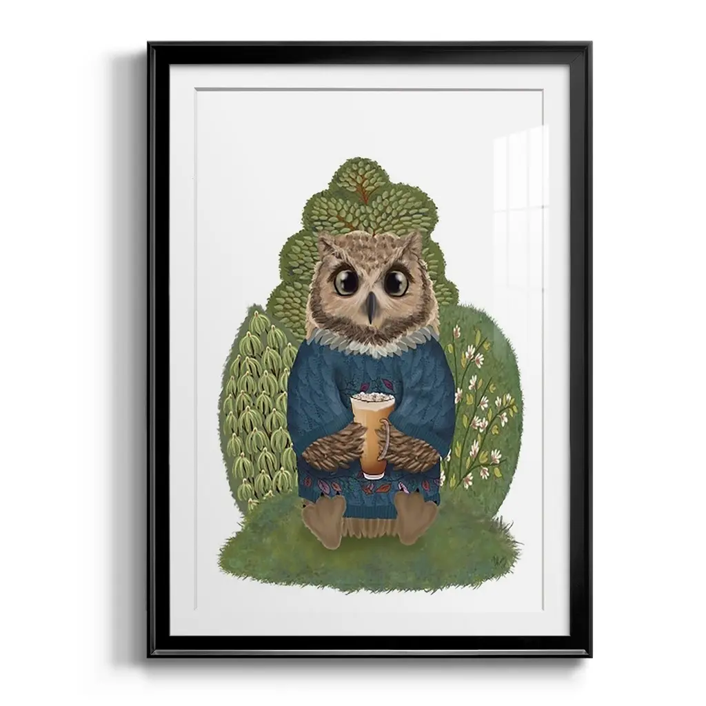 Latte Owl In Sweater Premium Framed Print - Ready To Hang - 22.5x30.5 - Black