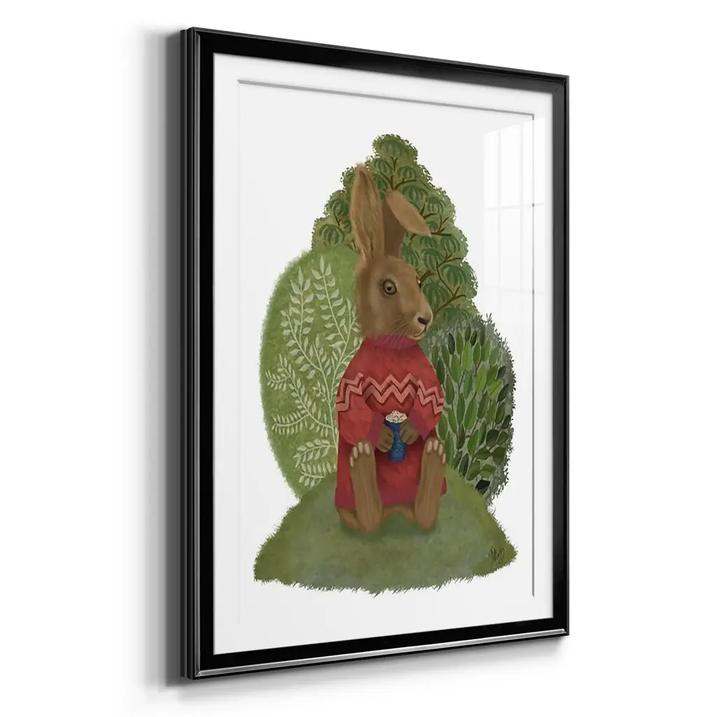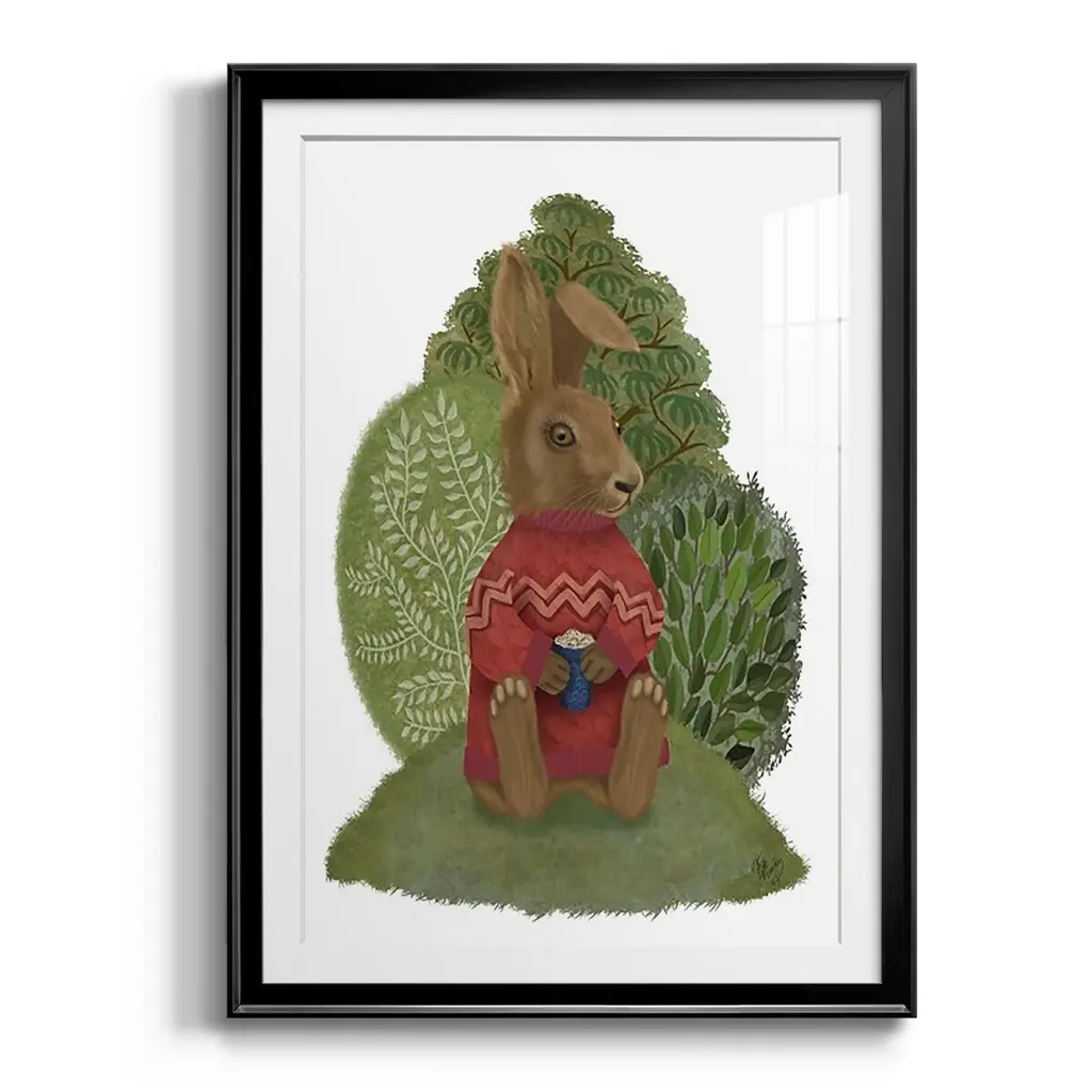 Latte Rabbit In Sweater Premium Framed Print - Ready To Hang - 26.5x36.5 - Black
