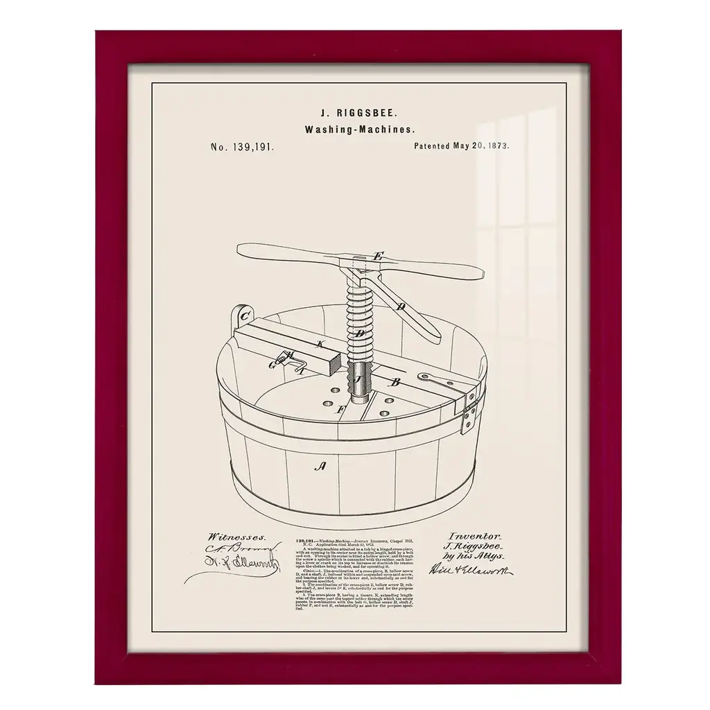 Laundry Patent III -EZ SWITCH Framed Print w/glass-Cherry Red A delightful, framed print. Featuring a solid wood frame with real wood glass. This premium print is giclee quality. In addition, every frame features a removable back and table top stand. This allows you to change your art in the future or to just stand the art on a table for a new look. We are sure you'll enjoy our new series of EZ SWITCH Framed Art. Solid Wood Frame Real Glass Removable / Replaceable Art Built in Tabletop Stand Sizes range from 4x6 up to 12x15 - buy just one or pair them up as sets as you see fit.