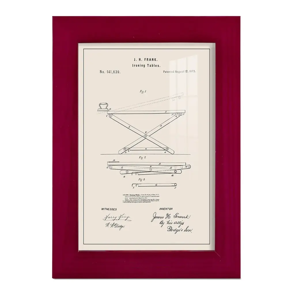 Laundry Patent IV -EZ SWITCH Framed Print w/glass-Cherry Red A delightful, framed print. Featuring a solid wood frame with real wood glass. This premium print is giclee quality. In addition, every frame features a removable back and table top stand. This allows you to change your art in the future or to just stand the art on a table for a new look. We are sure you'll enjoy our new series of EZ SWITCH Framed Art. Solid Wood Frame Real Glass Removable / Replaceable Art Built in Tabletop Stand Sizes range from 4x6 up to 12x15 - buy just one or pair them up as sets as you see fit.