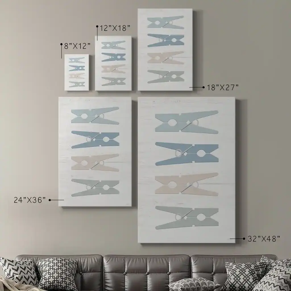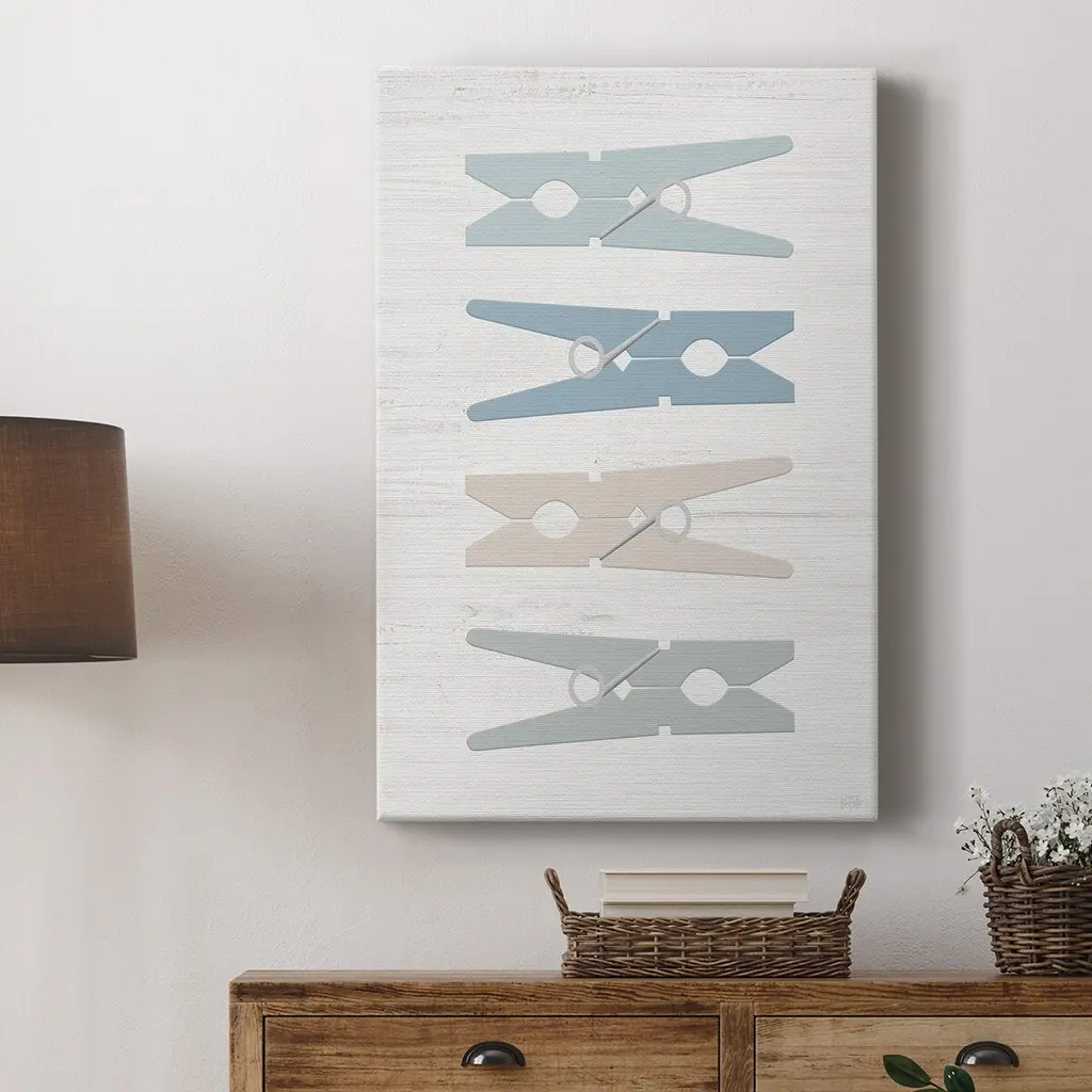 Laundry Pins Premium Gallery Wrapped Canvas - Ready to Hang A premium hand stretched gallery wrapped canvas print created to last. Featuring a beveled a solid wood stretcher bar, each piece comes ready to hand 6 SIZES AVAILABLE 8''X12'' - Overall Size 12''X18'' - Overall Size 18''X27'' - Overall Size 24''x36'' - Overall Size 32''x48'' - Overall Size 40''x60'' - Overall Size Each piece is made to order. Built to Last Each piece comes ready to hang Solid wood stretcher Fade and Water resistant Made domestically