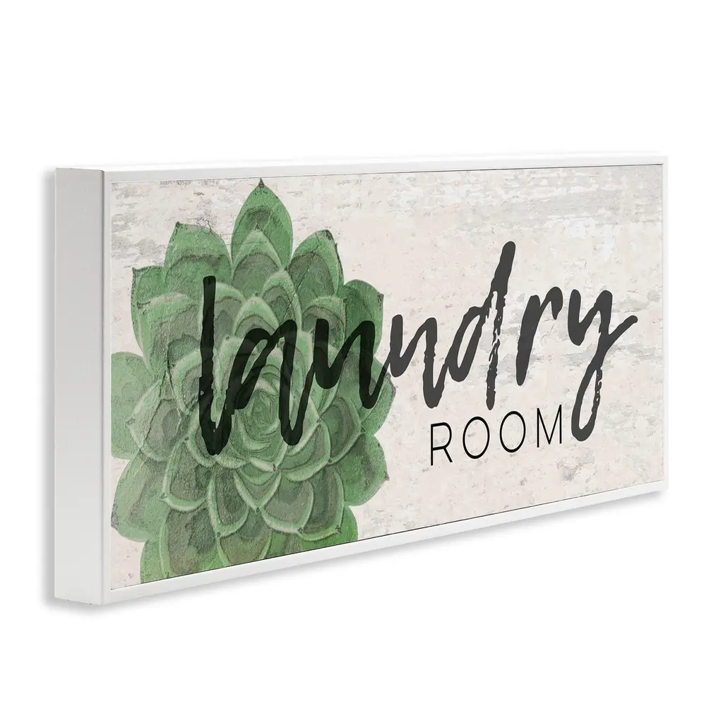 Laundry Room Green Succulent Soft Textured Paper Look Framed Wall Art - 10 X 24 - Wood - White
