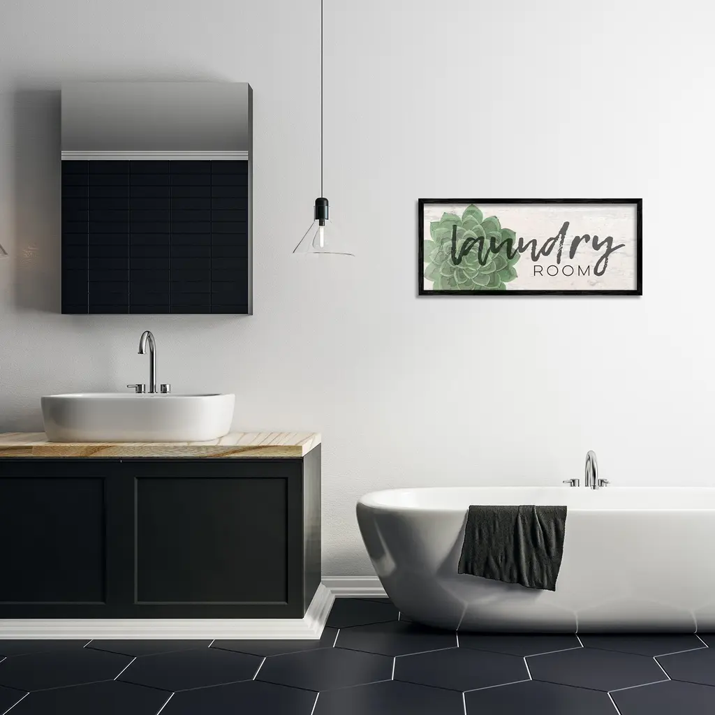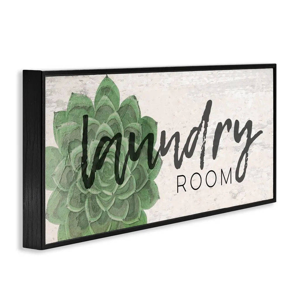 Laundry Room Green Succulent Soft Textured Paper Look Framed Wall Art - 13 X 30 - Wood - Grey