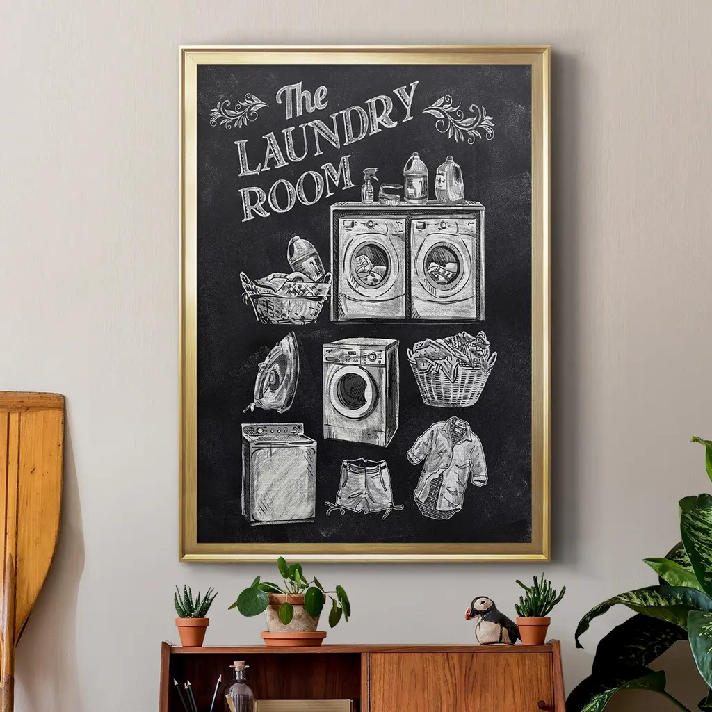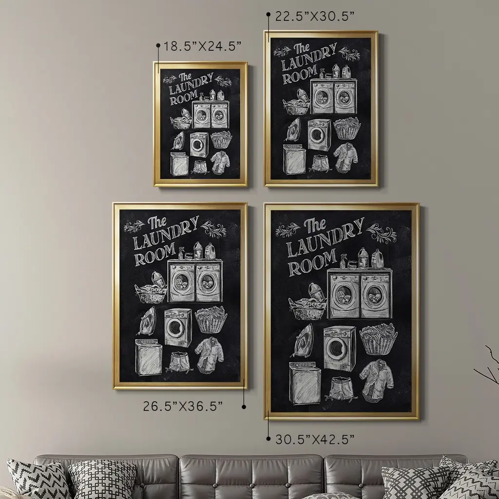 Laundry Room Premium Framed Print - Ready to Hang A Premium Framed Print created to last. Framed in distressed wood and available in an array of sizes and colors Featuring a beveled a solid wood stretcher bar, each piece comes ready to hand 4 SIZES AVAILABLE 30.5''X42.5'' - Overall Size 26.5'X36.5'' - Overall Size 22.5''x30.5'' - Overall Size 18.5''x24.5'' - Overall Size Each piece is made to order. Each piece comes with hanging hardware. Made in the USA Ready to Hang