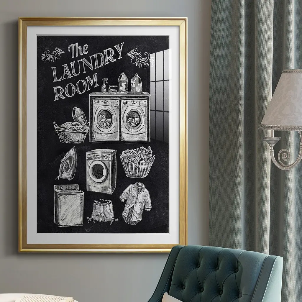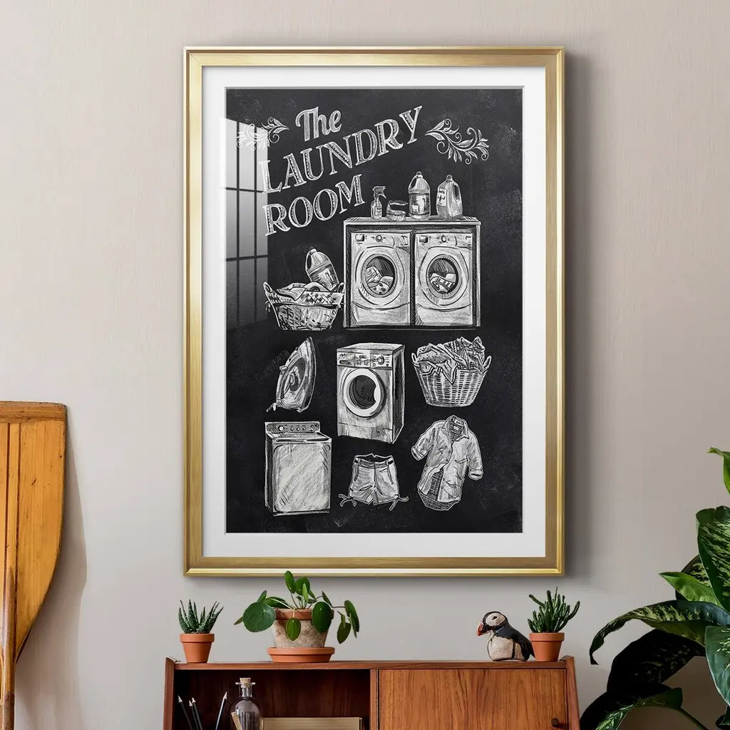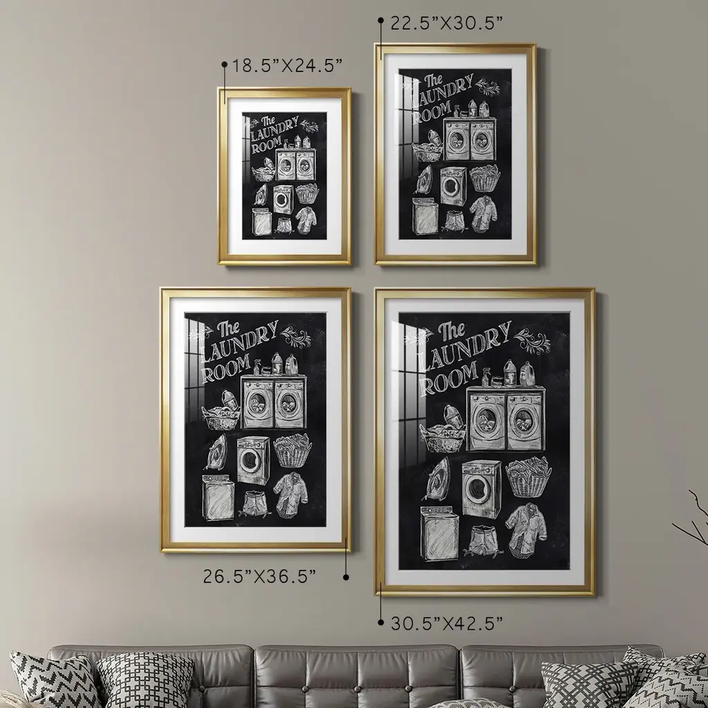 Laundry Room Premium Framed Print - Ready to Hang A Premium Framed Print created to last. Framed in distressed wood and available in an array of sizes and colors Featuring a beveled a solid wood stretcher bar, each piece comes ready to hand 4 SIZES AVAILABLE 30.5''X42.5'' - Overall Size 26.5'X36.5'' - Overall Size 22.5''x30.5'' - Overall Size 18.5''x24.5'' - Overall Size Each piece is made to order. Each piece comes with hanging hardware. Made in the USA Ready to Hang Giclee Paper Print Acrylic Glass Beveled Matt Board