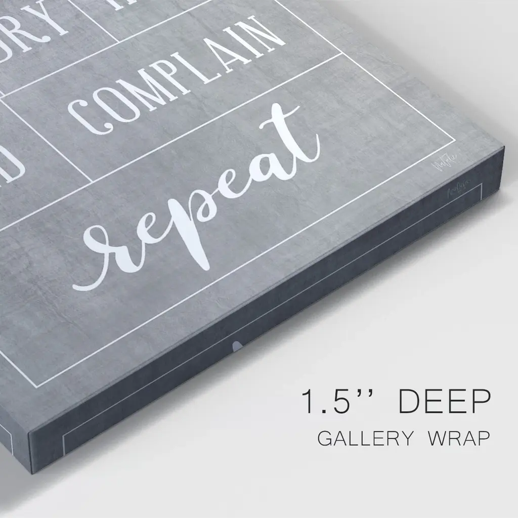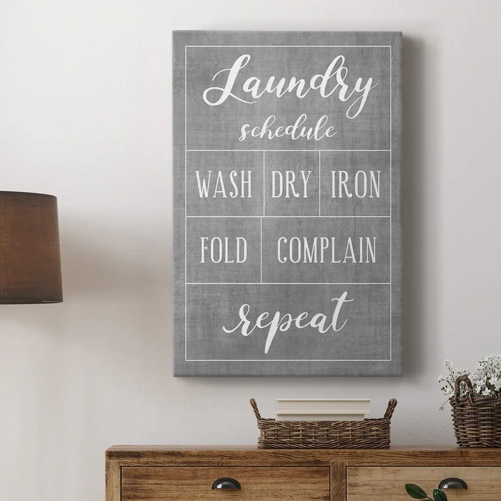 Laundry Schedule Premium Gallery Wrapped Canvas - Ready to Hang A premium hand stretched gallery wrapped canvas print created to last. Featuring a beveled a solid wood stretcher bar, each piece comes ready to hand 6 SIZES AVAILABLE 8''X12'' - Overall Size 12''X18'' - Overall Size 18''X27'' - Overall Size 24''x36'' - Overall Size 32''x48'' - Overall Size 40''x60'' - Overall Size Each piece is made to order. Built to Last Each piece comes ready to hang Solid wood stretcher Fade and Water resistant Made domestically