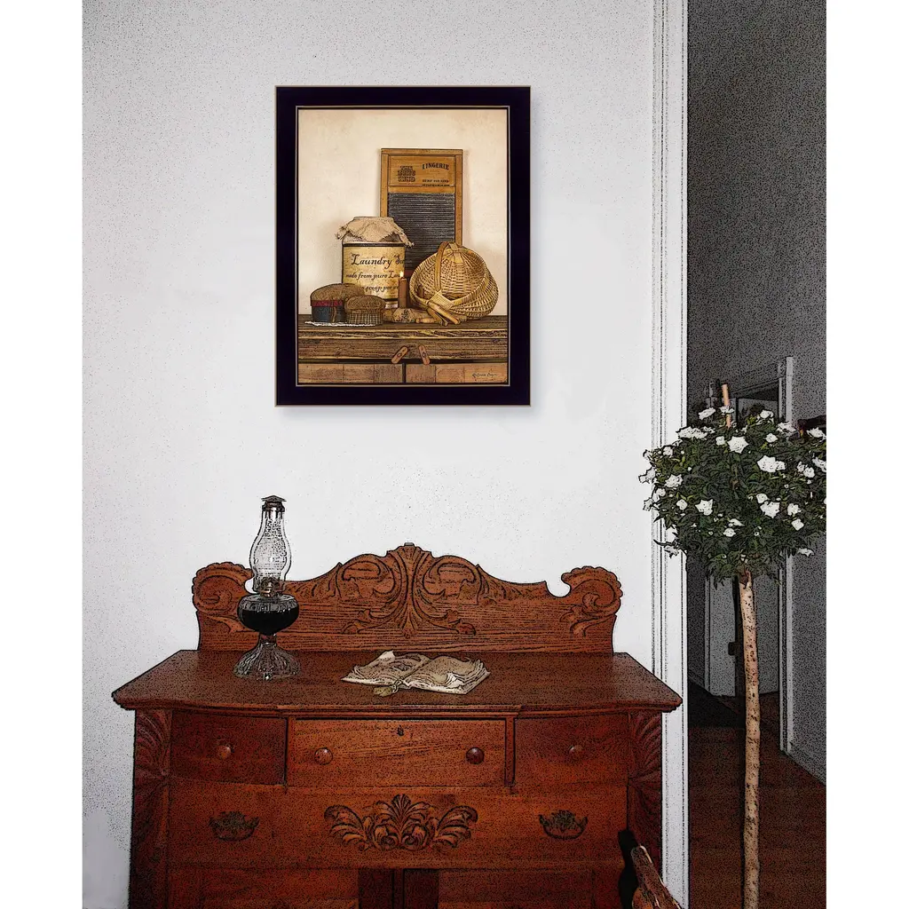 Add an air of fashion to your room and rejuvenate the space with this laundry soap 3 black framed print wall art. This print is a visual artistic expression that allows you to decorate your space in style. Reproduced for you on paper, this hanging decorative accent will be a trendy and fashionable way to dress your walls. Adding this hanging wall art to your space to make your room feel more finished and attractive. Instantly liven up your space with this art that brings color and dimension to your walls. 18" H x 14" W x 1" D