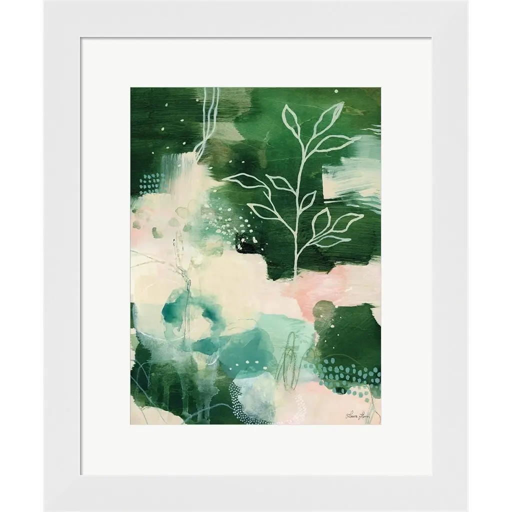 Nature Story II by Laura Horn is a high quality piece of framed artwork. The finished size of this piece is 14.75" X 17.75". It has a Slim Solid White Flat with Satin Finish frame, is single matted and finished with high quality Acrylic Plexiglass. 100% Satisfaction Guaranteed.