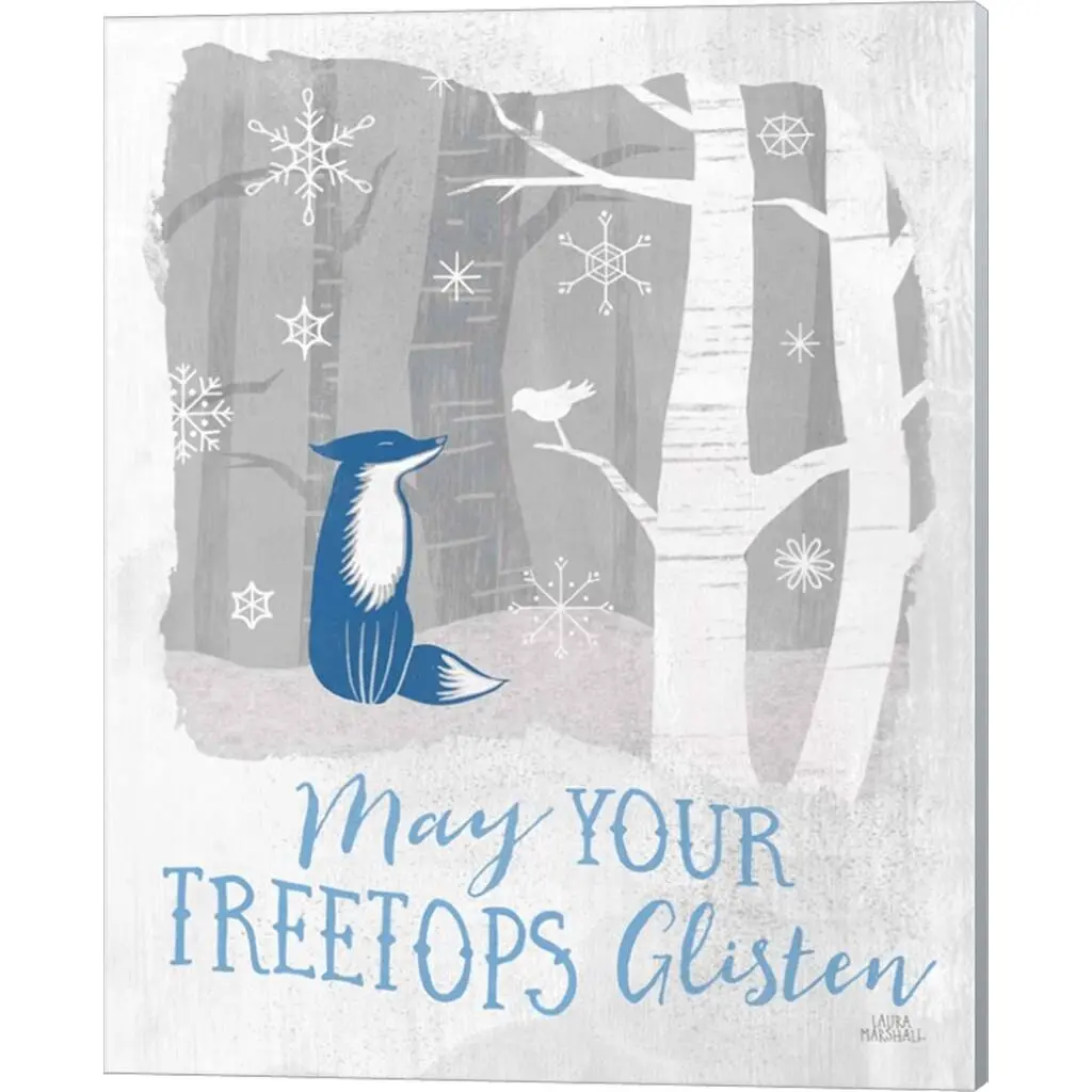 Woodland Wishes II Blue by Laura Marshall is a high quality piece of canvas artwork. The finished size of this piece is 16" X 20", and it has a depth 0.75" with winter gray painted sides. There is a UV protective coating over the entire image, and it is ready to hang on your wall with a Standard Drywall Screw (not included). 100% Satisfaction Guaranteed.