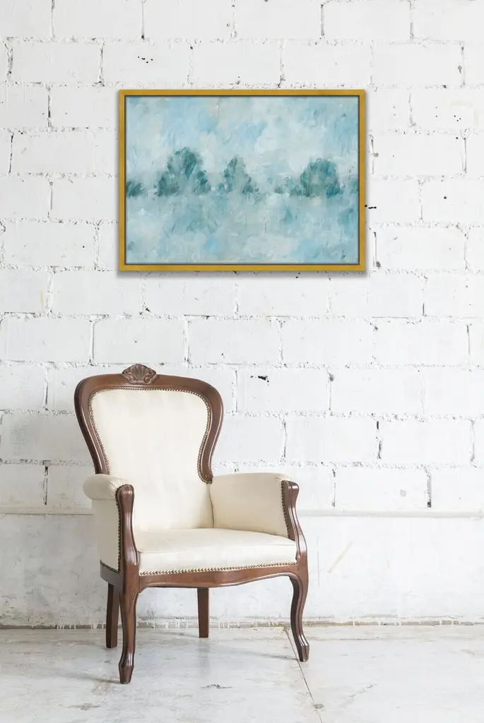 Seen first at One Kings Lane: This abstracted landscape by Laura Roebuck is characterized by its bold brushstrokes and hazy, atmospheric quality. Printed on canvas and displayed in a giltwood frame, this piece arrives ready to hang.Drawing inspiration from the natural world, Laura Roebuck seeks to translate her impressions onto paper and canvas. It's the abstraction of detail as she paints that lends itself to the whole of each piece. Color, pattern, and form come together to create an image that can be viewed as literal while maintaining the incommunicable quality of the abstract. Laura and her sister-in-law, Kate, are the creative duo behind BowerBird, an online studio and shop where they show and sell their work. A southern girl with roots in Georgia, Laura and her family live a farm life on Lookout Mountain where she is spoiled daily with the abundance of life in the woods.