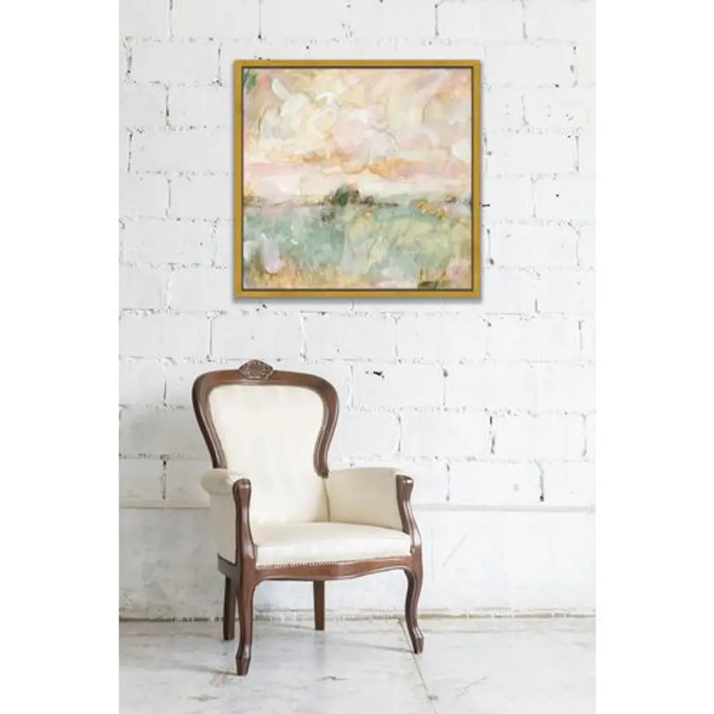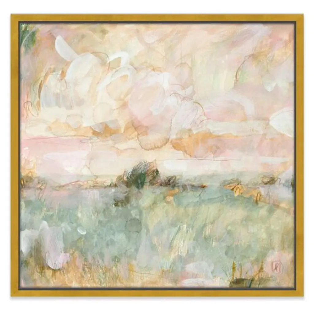 Seen first at One Kings Lane: This abstracted landscape by Laura Roebuck is characterized by its bold brushstrokes and hazy, atmospheric quality. Printed on canvas and displayed in a giltwood frame, this piece arrives ready to hang.Drawing inspiration from the natural world, Laura Roebuck seeks to translate her impressions onto paper and canvas. It's the abstraction of detail as she paints that lends itself to the whole of each piece. Color, pattern, and form come together to create an image that can be viewed as literal while maintaining the incommunicable quality of the abstract. Laura and her sister-in-law, Kate, are the creative duo behind BowerBird, an online studio and shop where they show and sell their work. A southern girl with roots in Georgia, Laura and her family live a farm life on Lookout Mountain where she is spoiled daily with the abundance of life in the woods.