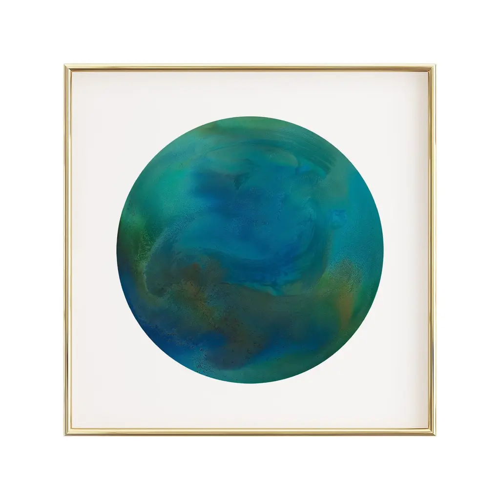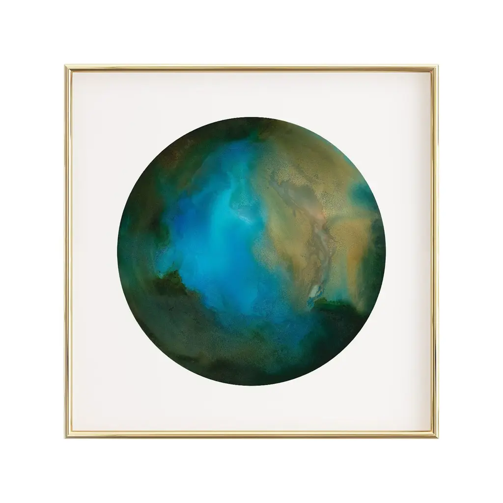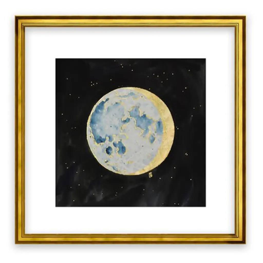 Exclusive to One Kings Lane: A captivating lunar study from Laura Roebuck is faithfully reproduced here on heavyweight watercolor paper with the integrity and depth of color seen in the original. Matted and displayed in a golden hardwood frame, this piece arrives ready to hang.Drawing inspiration from the natural world, Laura Roebuck seeks to translate her impressions onto paper and canvas. It's the abstraction of detail as she paints that lends itself to the whole of each piece. Color, pattern, and form come together to create an image that can be viewed as literal while maintaining the incommunicable quality of the abstract. Laura and her sister-in-law, Kate, are the creative duo behind BowerBird, an online studio and shop where they show and sell their work. A southern girl with roots in Georgia, Laura and her family live a farm life on Lookout Mountain where she is spoiled daily with the abundance of life in the woods.