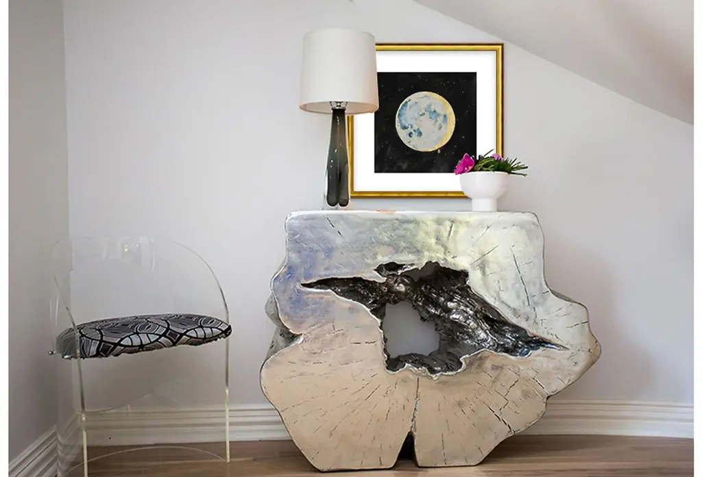 Exclusive to One Kings Lane: A captivating lunar study from Laura Roebuck is faithfully reproduced here on heavyweight watercolor paper with the integrity and depth of color seen in the original. Matted and displayed in a golden hardwood frame, this piece arrives ready to hang.Drawing inspiration from the natural world, Laura Roebuck seeks to translate her impressions onto paper and canvas. It's the abstraction of detail as she paints that lends itself to the whole of each piece. Color, pattern, and form come together to create an image that can be viewed as literal while maintaining the incommunicable quality of the abstract. Laura and her sister-in-law, Kate, are the creative duo behind BowerBird, an online studio and shop where they show and sell their work. A southern girl with roots in Georgia, Laura and her family live a farm life on Lookout Mountain where she is spoiled daily with the abundance of life in the woods.