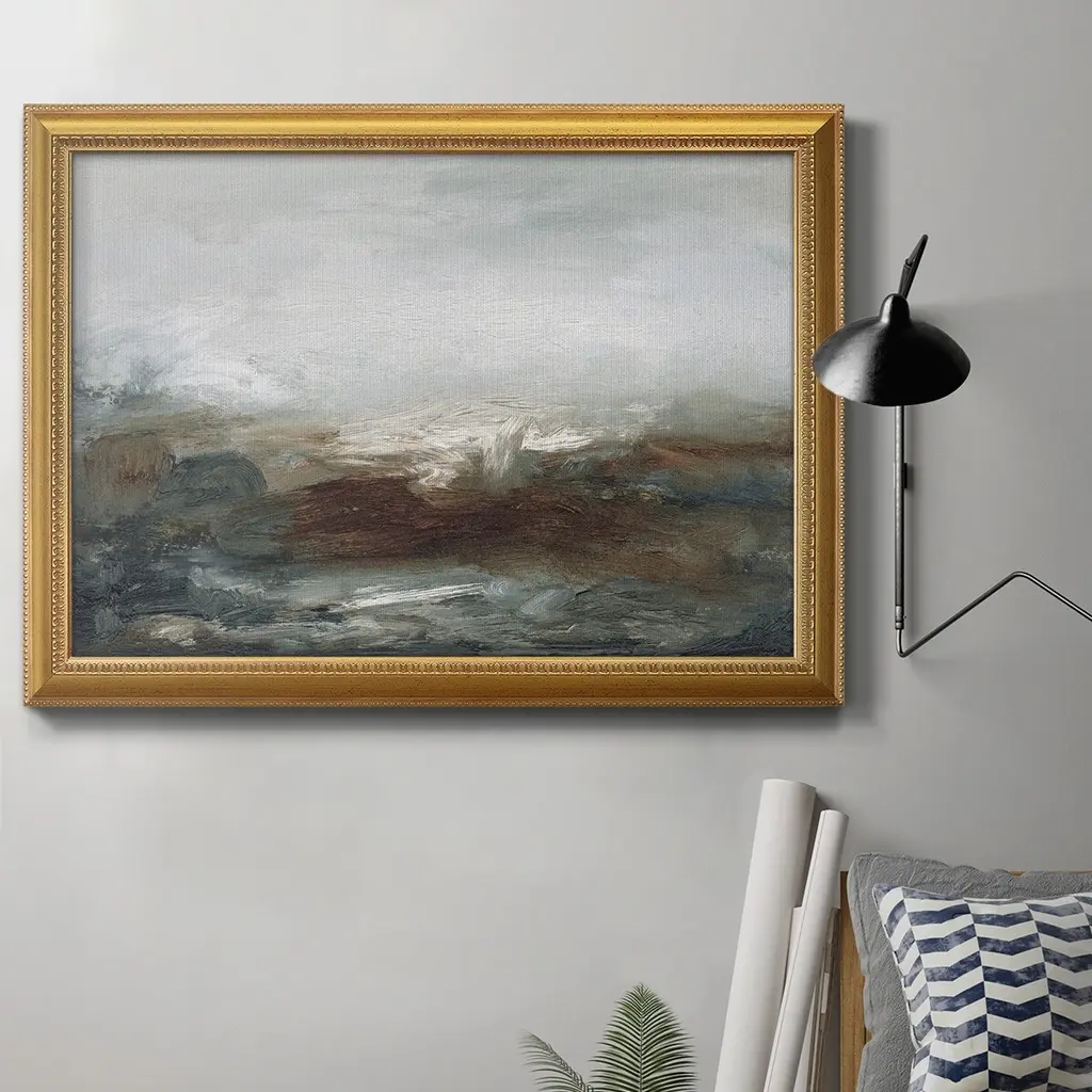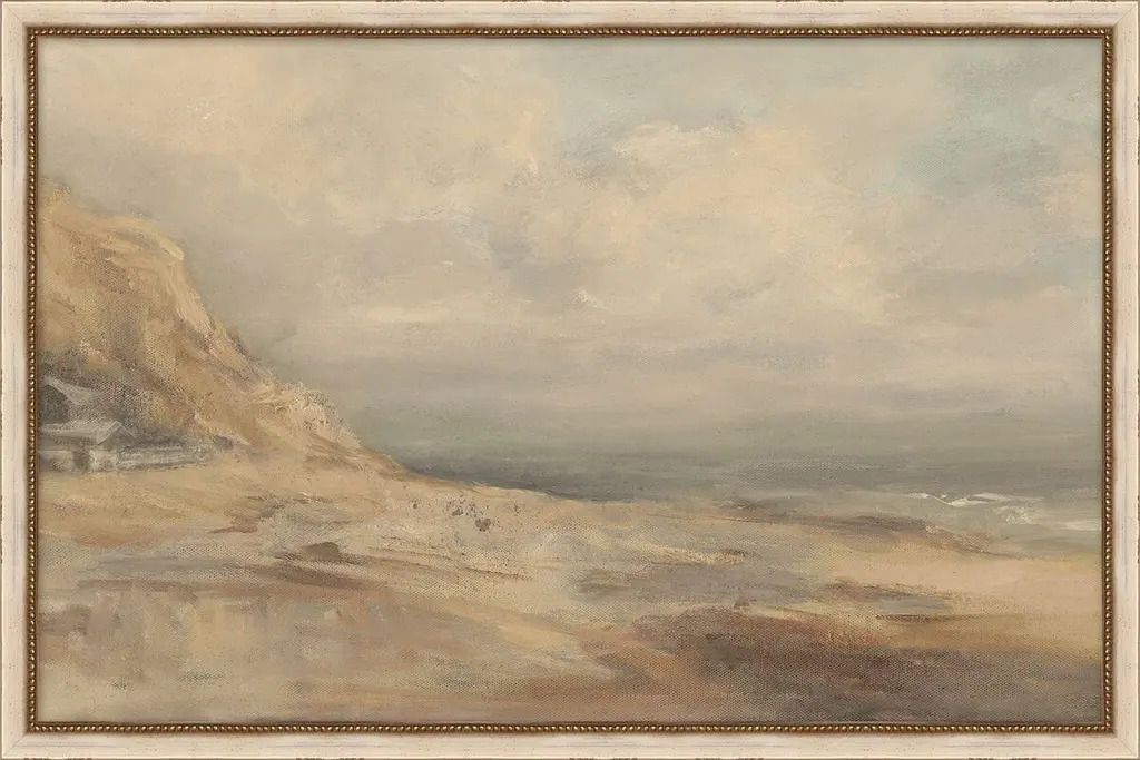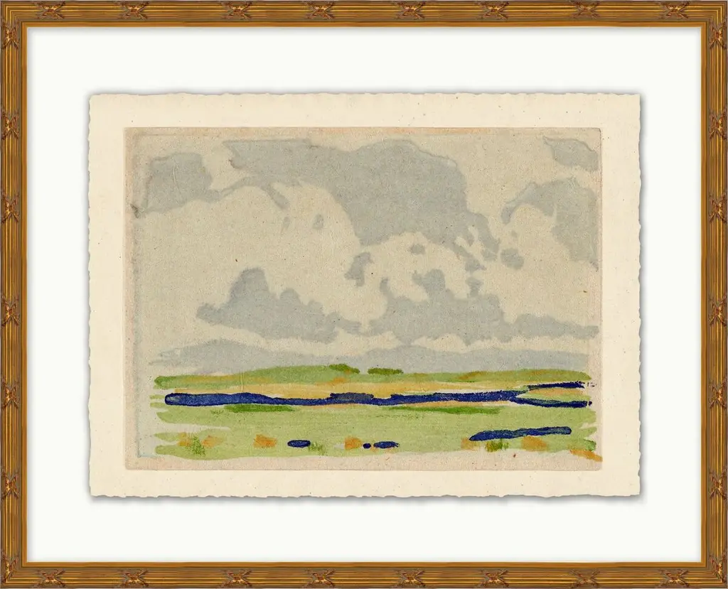 This giclée reproduction of English artist John Constable's 1821 landscape Cloud Study, Early Morning, Looking East from Hampstead arrives matted within a frame with two rows of gold beading, ready to hang.