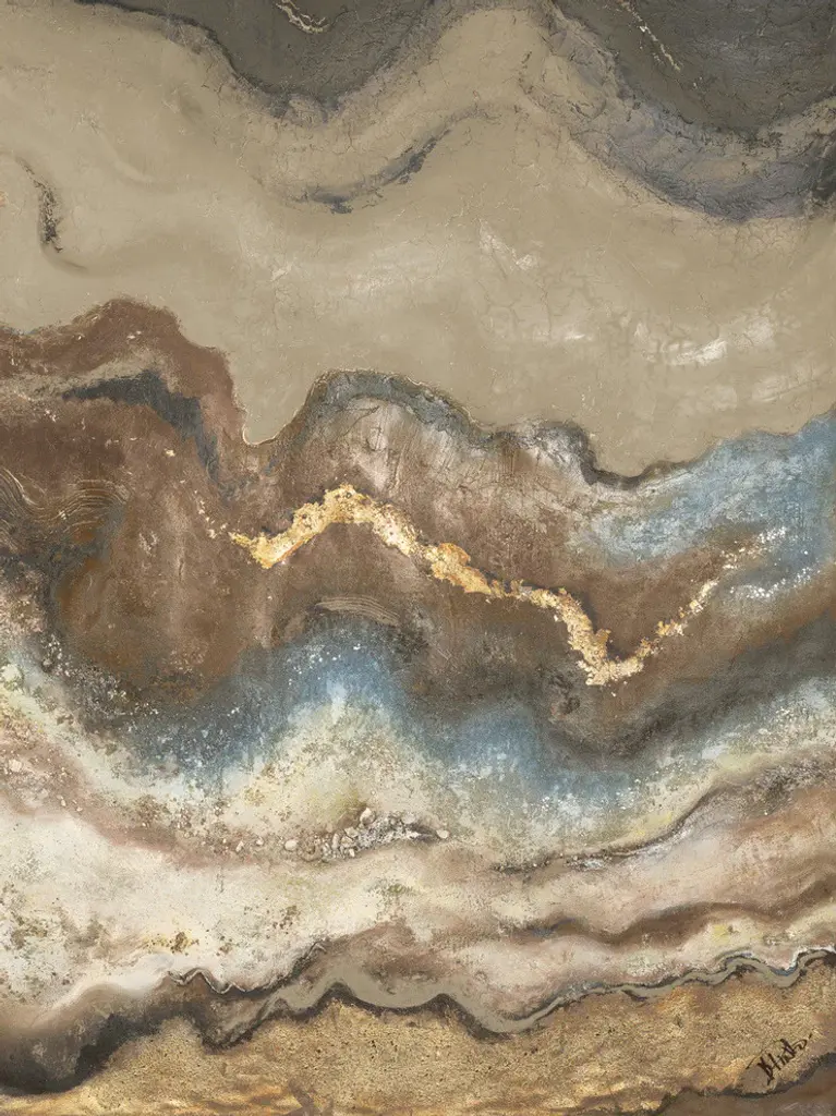 Contemporary abstract artwork resembling sedimentary rock layers.