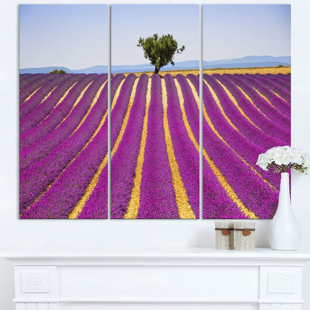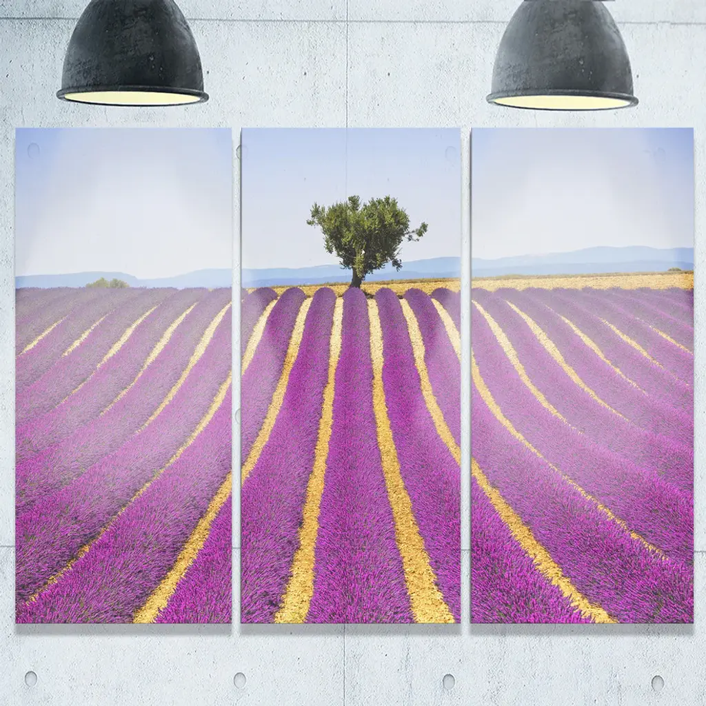 "Lavender And Lonely Tree Uphill" Metal Wall Art, 3 Panels, 36"x28"