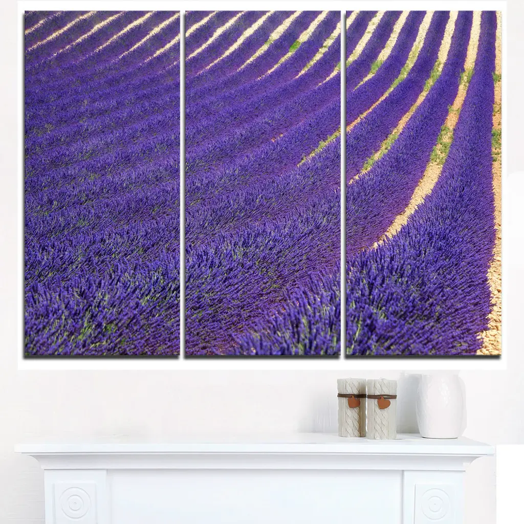 "Lavender Blooming Fields As Texture" Metal Wall Art, 3 Panels, 36"x28"