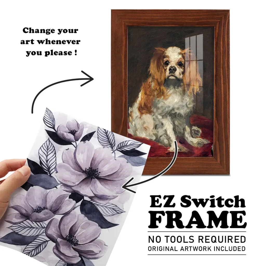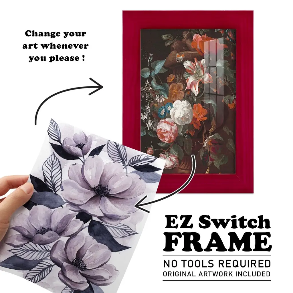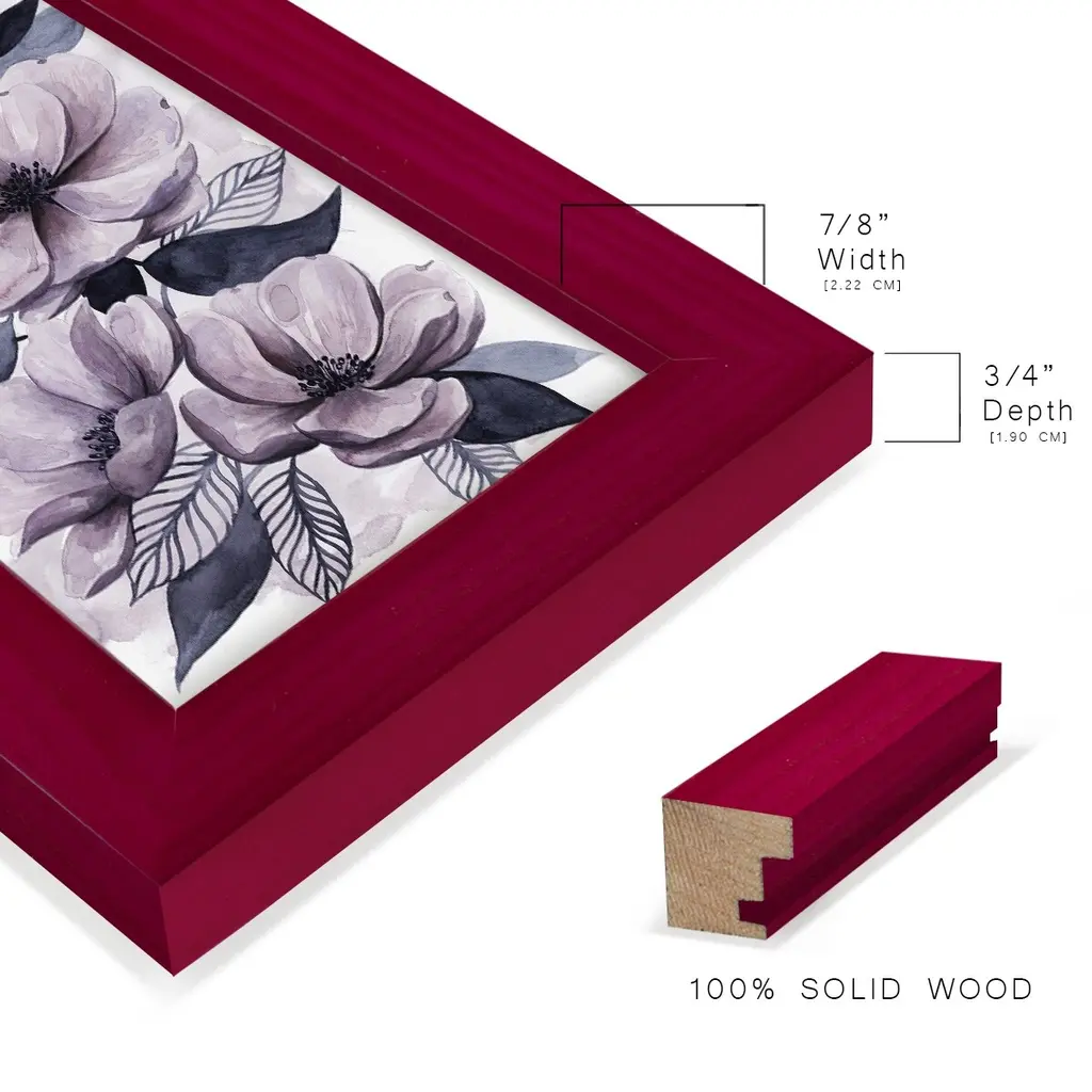 Lavender Burst II -EZ SWITCH Framed Print w/glass-Cherry Red A delightful, framed print. Featuring a solid wood frame with real wood glass. This premium print is giclee quality. In addition, every frame features a removable back and table top stand. This allows you to change your art in the future or to just stand the art on a table for a new look. We are sure you'll enjoy our new series of EZ SWITCH Framed Art. Solid Wood Frame Real Glass Removable / Replaceable Art Built in Tabletop Stand Sizes range from 4x6 up to 12x15 - buy just one or pair them up as sets as you see fit.