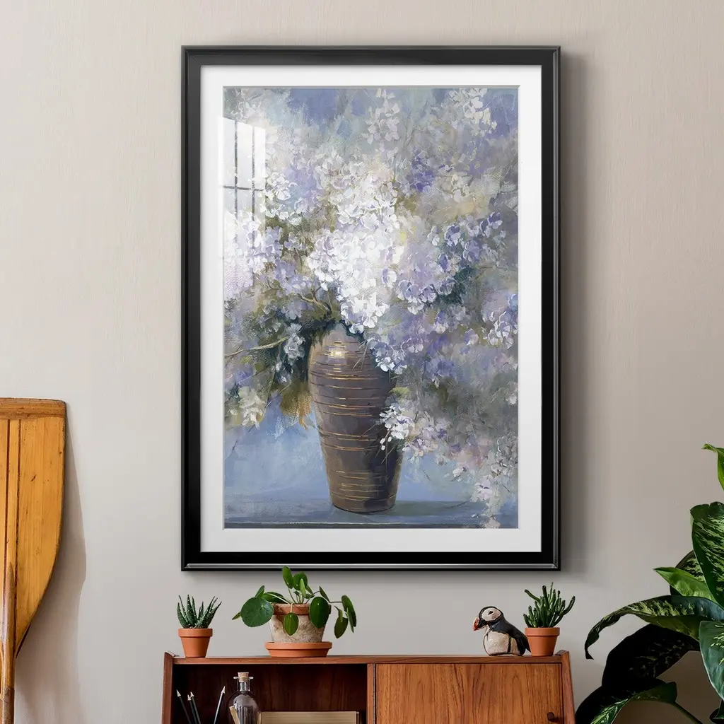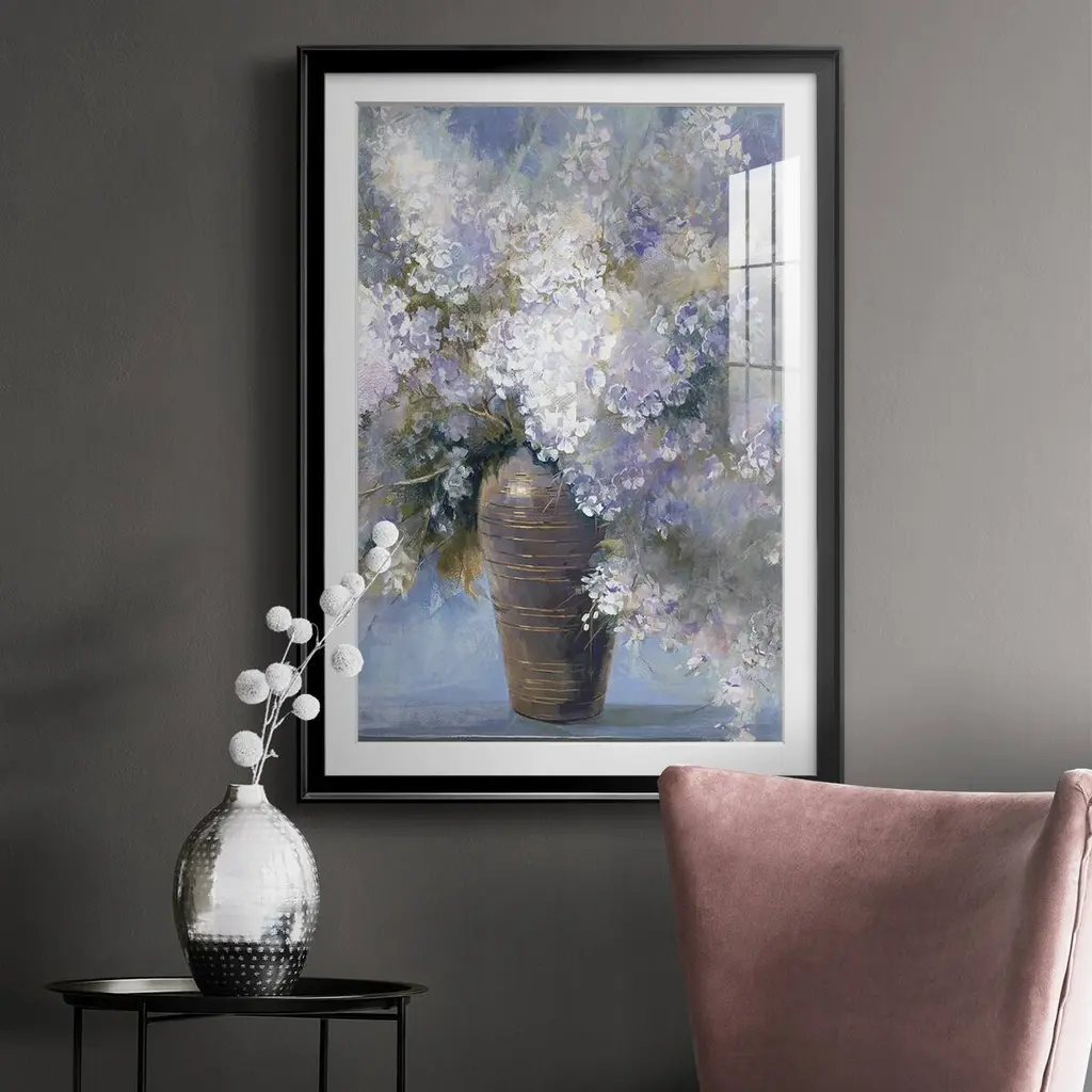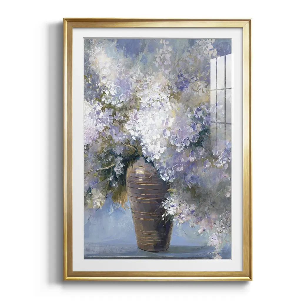 Lavender Explosion Revisited Premium Framed Print - Ready to Hang A Premium Framed Print created to last. Framed in distressed wood and available in an array of sizes and colors Featuring a beveled a solid wood stretcher bar, each piece comes ready to hand 4 SIZES AVAILABLE 30.5''X42.5'' - Overall Size 26.5'X36.5'' - Overall Size 22.5''x30.5'' - Overall Size 18.5''x24.5'' - Overall Size Each piece is made to order. Each piece comes with hanging hardware. Made in the USA Ready to Hang Giclee Paper Print Acrylic Glass Beveled Matt Board
