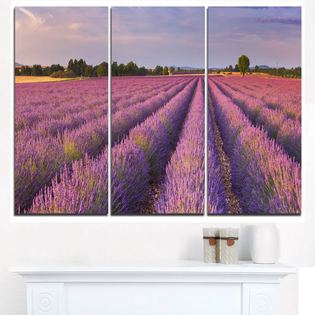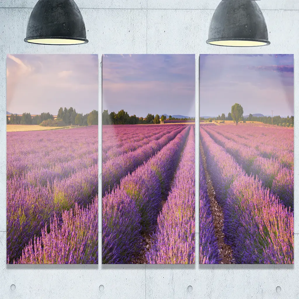 "Lavender Flower Rows In France" Metal Wall Art, 3 Panels, 36"x28"