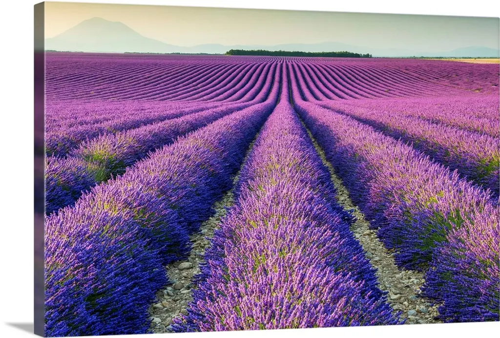 Bring contemporary abstraction to your home with this large 36W x 28H Metal Wall Art. This Lavender Flower Rows in France Metal Artwork makes it the focal point of any room or office. - White gloss coating ensures colors are extra vibrant with light reflection.- Aluminum grade sheet metal with 1-inch mounting frame on the back giving the illusion that the artwork is floating on the wall.- Mounting brackets are included along with instructions.- High quality digital images are created directly into a glossy aluminum panel producing a stunning and captivating print into the glossy finish of the metal.- Water, fire and scratch resistant HD aluminum panels.- Looks better than any photo paper and guaranteed to last at least 20 years- Easy to clean with a microfiber cloth. Colors are far superior to regular canvas art. - Easy to hang