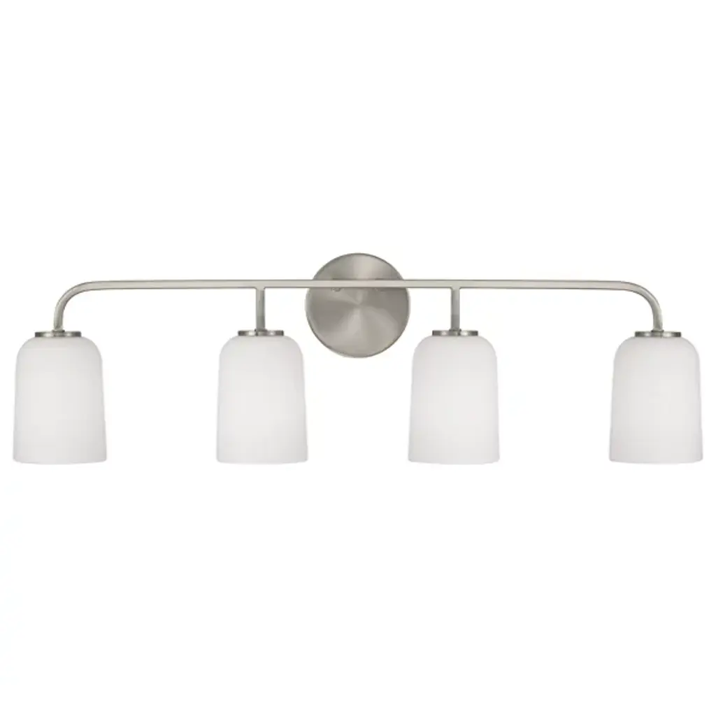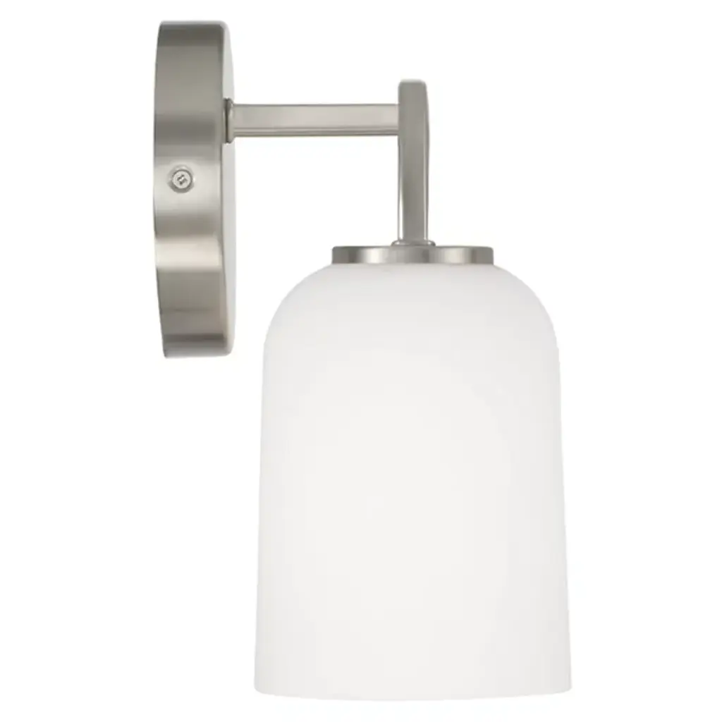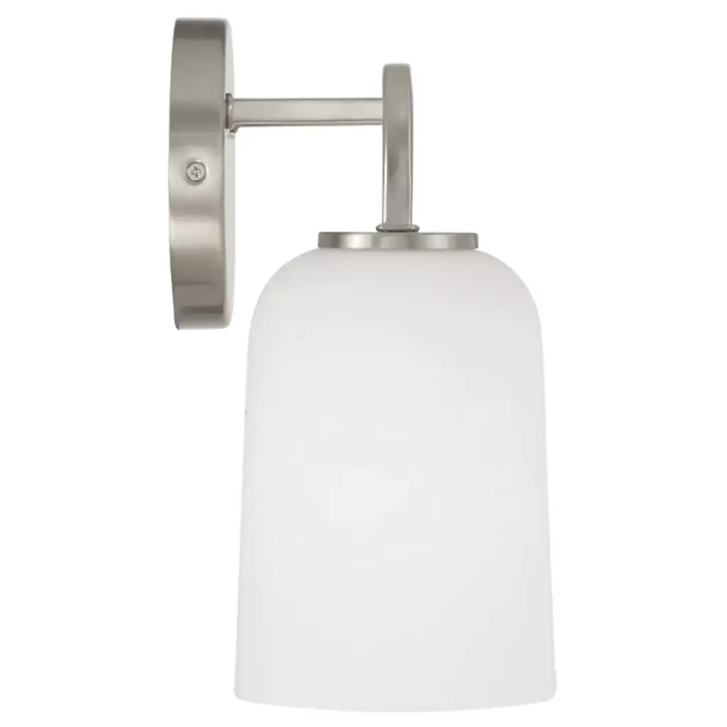 Enhance interior walls with the transitional allure of the Lawson Vanity Light from Capital Lighting. An airy confection of metal and glass, it extends from a disc-shaped metal wall mount, sending slender, sweeping arms out to strong, damp-listed lamping ensconced within rounded shades of translucent glass. The fixture itself is ADA compliant, not protruding too much from the wall, and each shade is an elongated dome, mellowing bright light into a gentle radiance accompanied by focused spots of downlight from each open base.