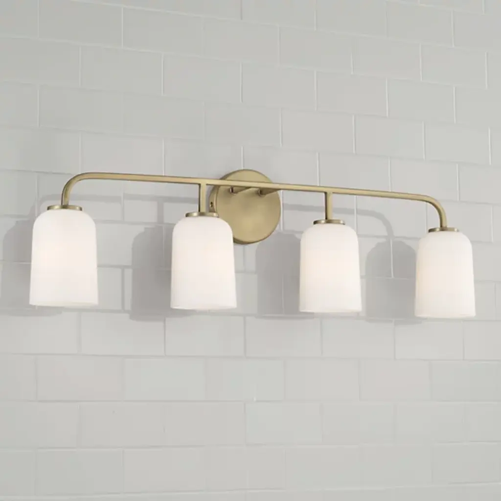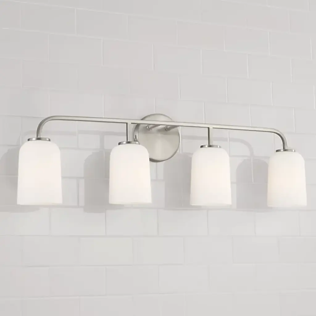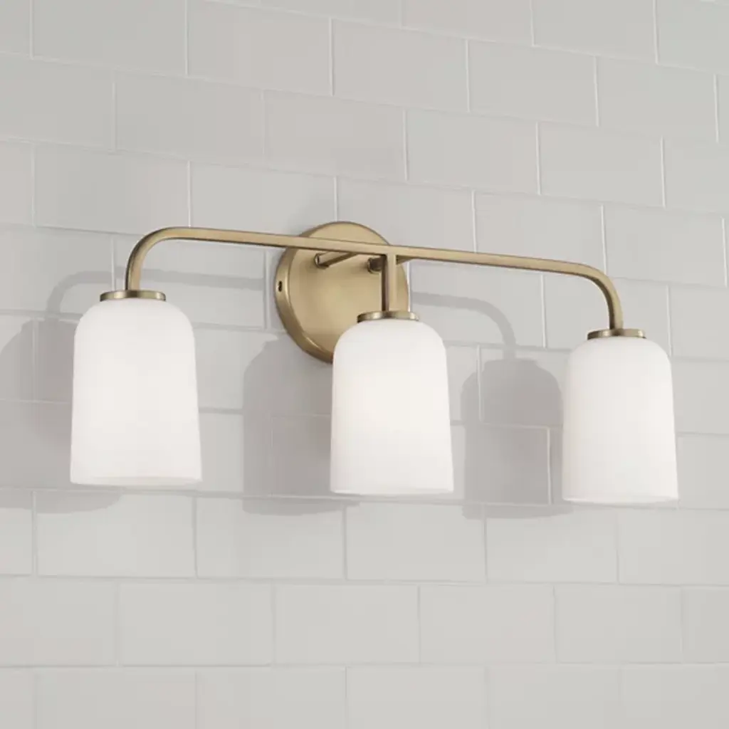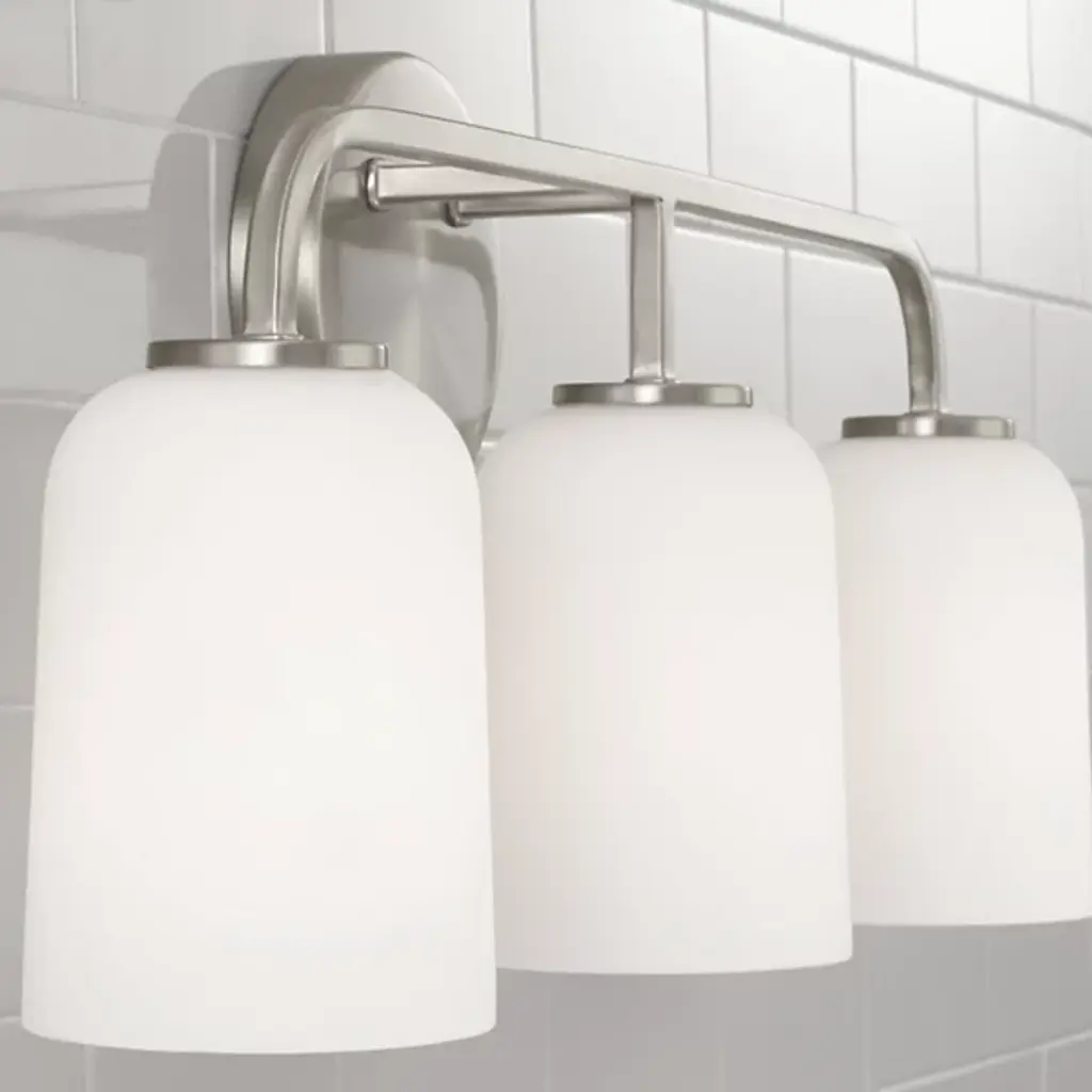 Enhance interior walls with the transitional allure of the Lawson Vanity Light from Capital Lighting. An airy confection of metal and glass, it extends from a disc-shaped metal wall mount, sending slender, sweeping arms out to strong, damp-listed lamping ensconced within rounded shades of translucent glass. The fixture itself is ADA compliant, not protruding too much from the wall, and each shade is an elongated dome, mellowing bright light into a gentle radiance accompanied by focused spots of downlight from each open base.