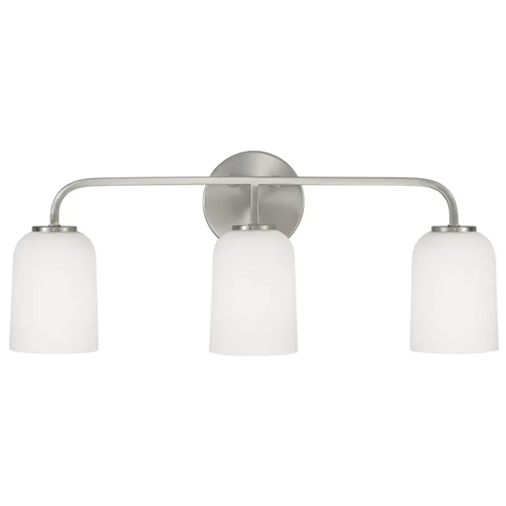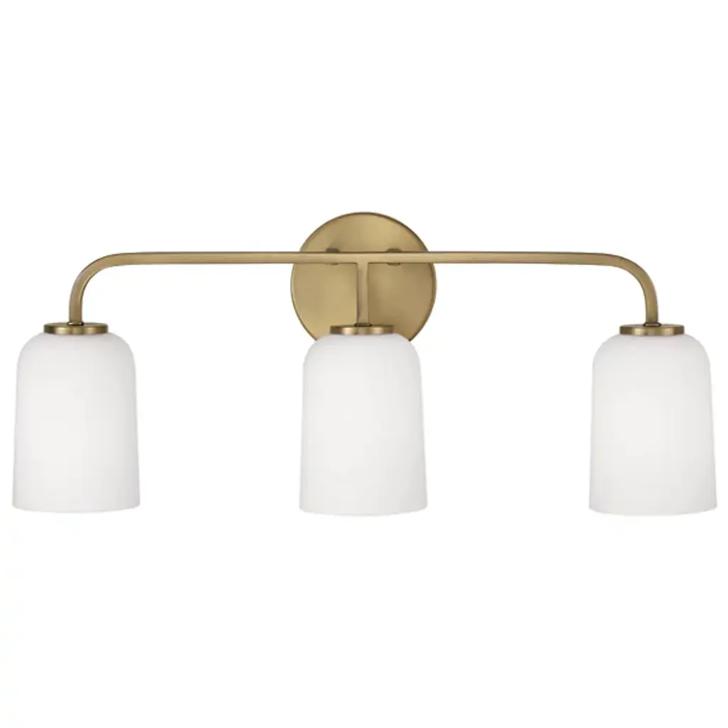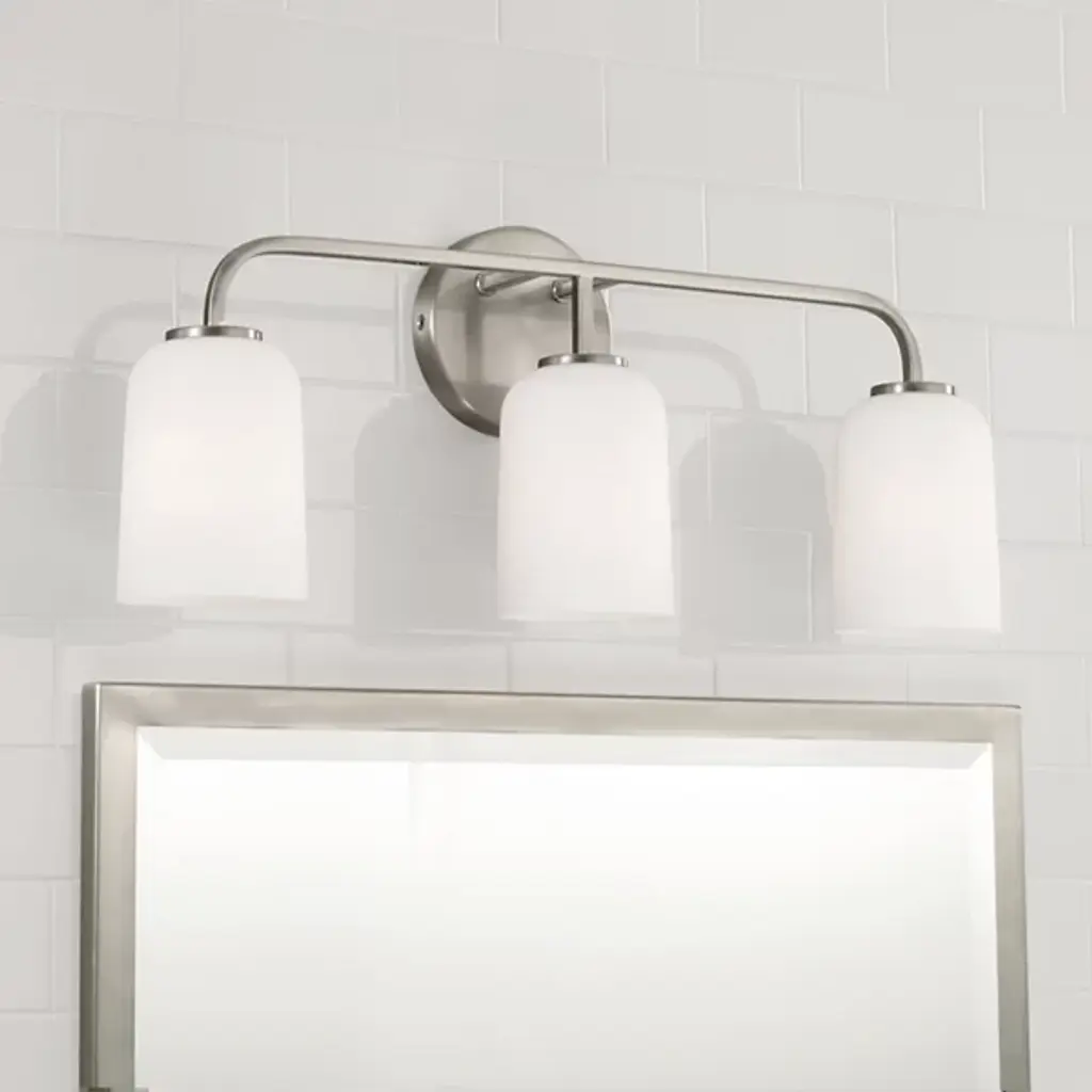 Enhance interior walls with the transitional allure of the Lawson Vanity Light from Capital Lighting. An airy confection of metal and glass, it extends from a disc-shaped metal wall mount, sending slender, sweeping arms out to strong, damp-listed lamping ensconced within rounded shades of translucent glass. The fixture itself is ADA compliant, not protruding too much from the wall, and each shade is an elongated dome, mellowing bright light into a gentle radiance accompanied by focused spots of downlight from each open base.