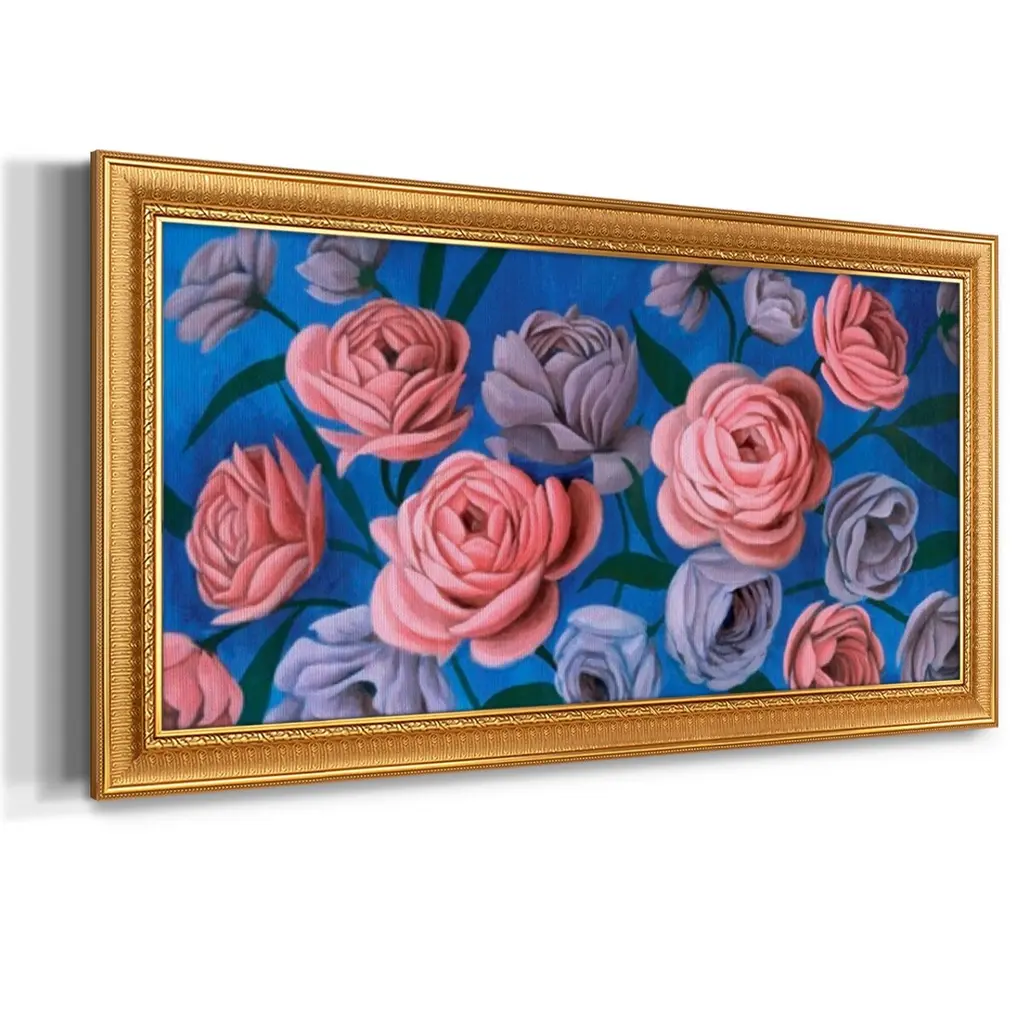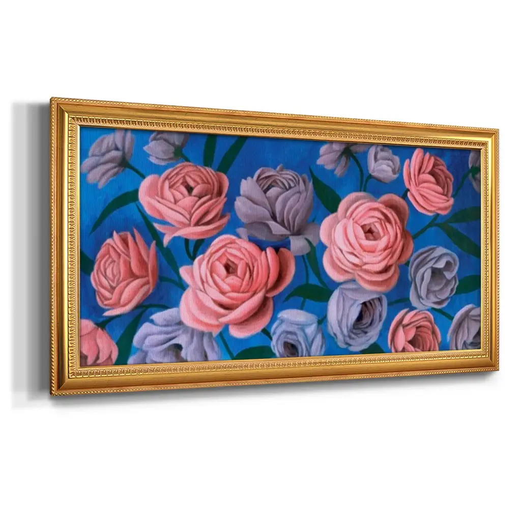 Layered Petals III Premium Framed Canvas- Ready to Hang A Premium Framed Canvas created to last. Framed in distressed wood and available in an array of sizes and colors Featuring a beveled a solid wood stretcher bar, each piece comes ready to hand 3 SIZES AVAILABLE 21''X37'' - Overall Size 25''X45'' - Overall Size 29''x53'' - Overall Size Each piece is made to order. Each piece comes with hanging hardware. Made in the USA Ready to Hang Giclee Paper Print Acrylic Glass Beveled Matt Board