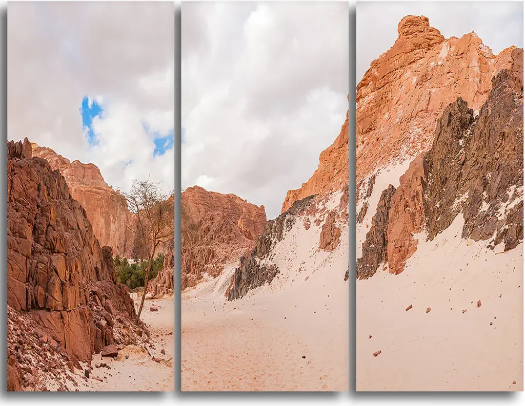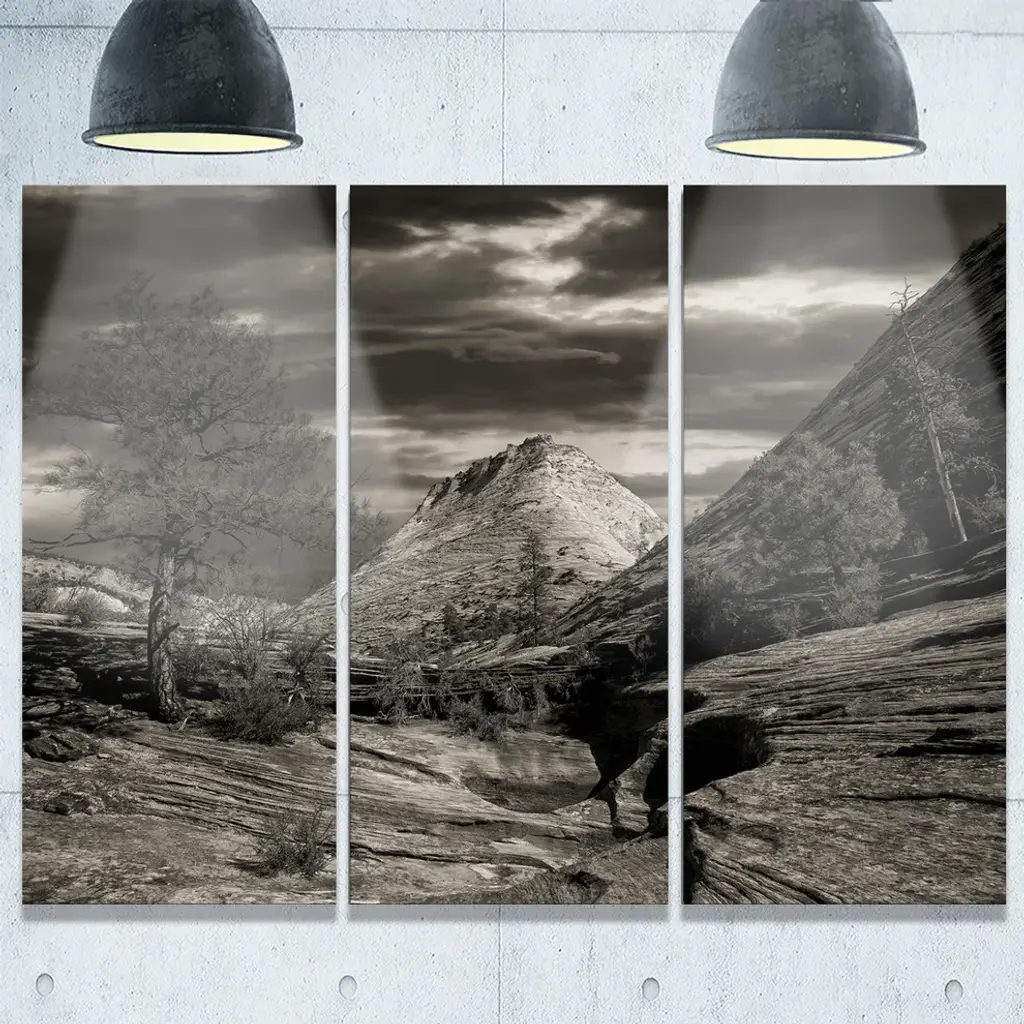 "Layers Of Red Rock Black And White" Metal Wall Art, 3 Panels, 36"x28"