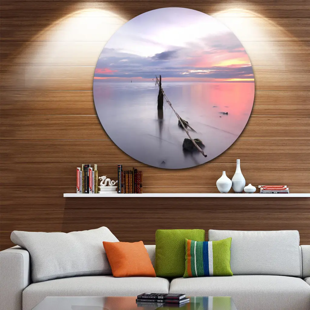 Bring Contemporary Abstraction to your home with this large Circle Metal wall art. This Lazy River at River Tejo Sacavem Metal Artwork makes it the focal point of any room or office. - White Gloss Coating ensures colors are extra vibrant with light reflection.- Aluminum grade Sheet Metal with 1 inch mounting frame on the back giving the illusion that the artwork is floating on the wall..- Mounting Brackets are included along with instructions.- High Quality Digital images are created directly into a glossy aluminum panel producing a stunning and captivating print into the glossy finish of the metal.- Water, Fire and Scratch resistant HD Aluminum panels.- Looks better than any photo paper and guaranteed to last at least 20 years- Easy to clean with a microfiber cloth. Colors are far superior to regular Canvas Art. - Easy to Hang