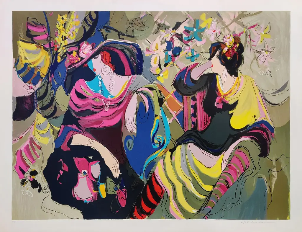 A painting from the early 20th century shows nude female figures in provocative poses.