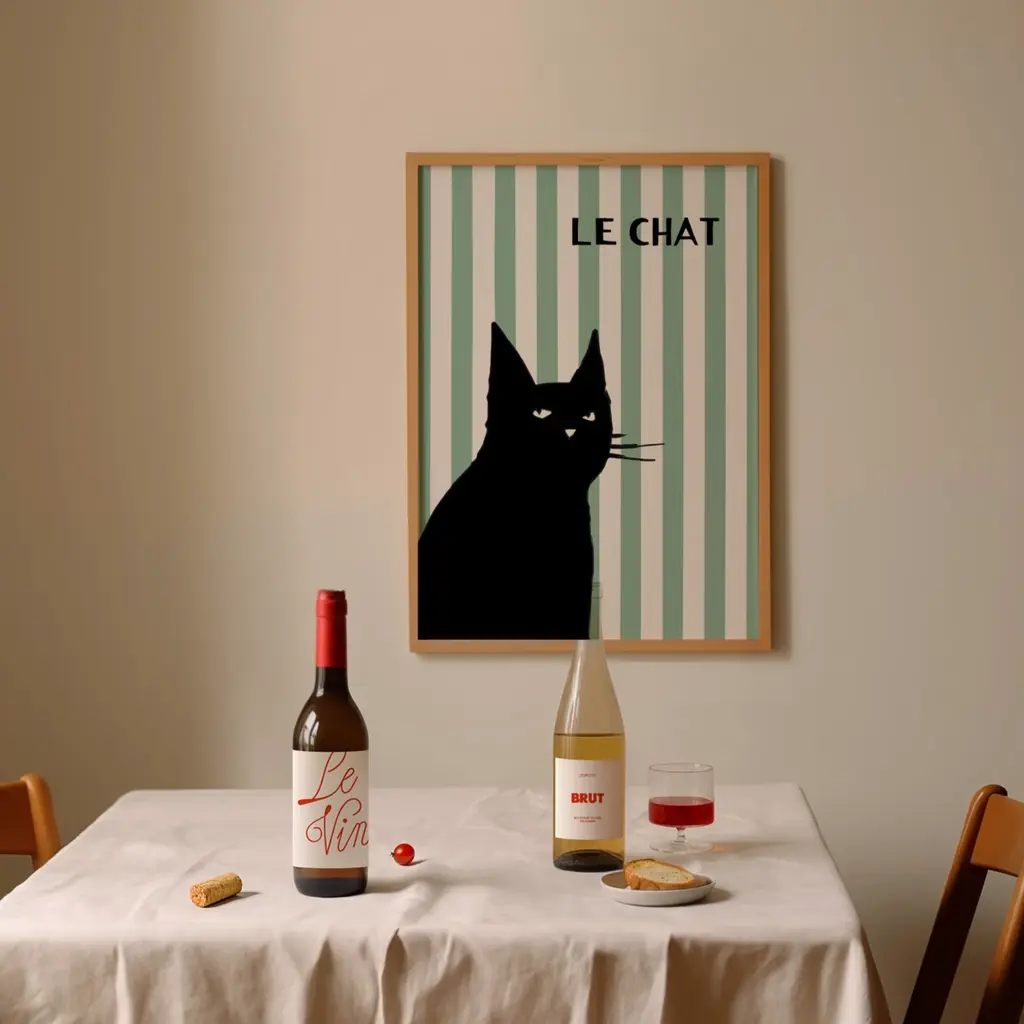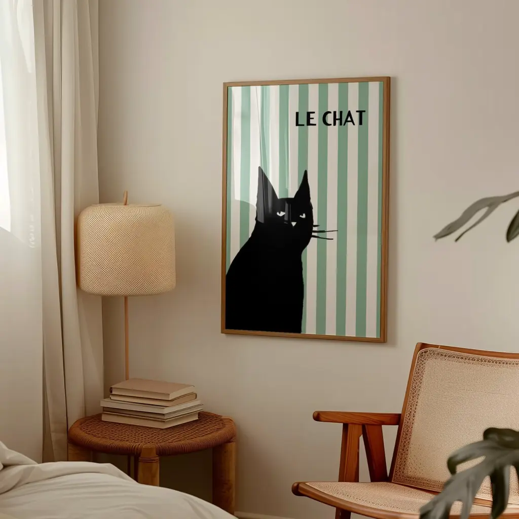 Our Le chat striped green illustrated art print is the perfect playful piece for any cat obsessed, add a bit of retro to your walls whilst playing homage to your favourite animals. Pair with green plants and teak furniture for a mid century sophistication. Sold without frameGiclée printed on Munken pure smooth cream paper which is certified by the Rainforest Alliance Program for FSC® Standards.Designed by Fanclub owners and sisters, Johanna and Felicity in our UK studio.