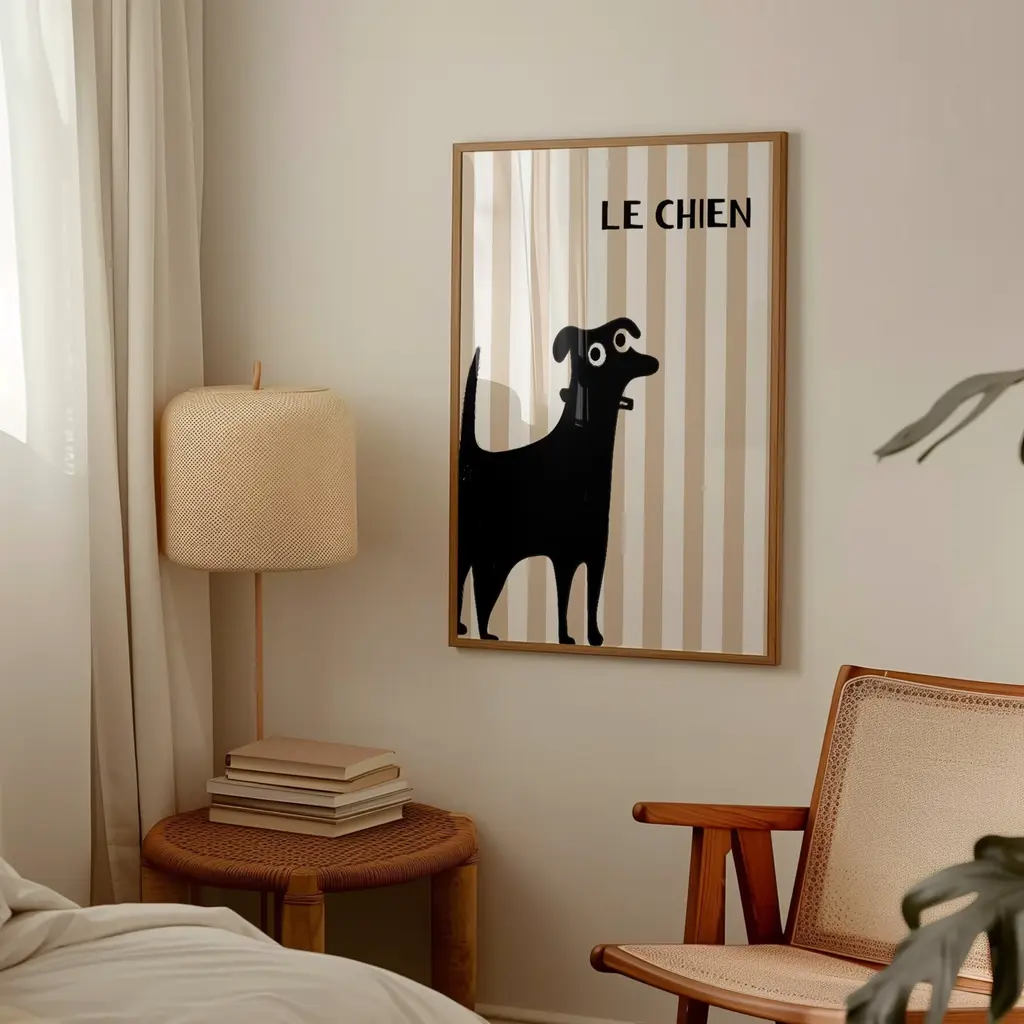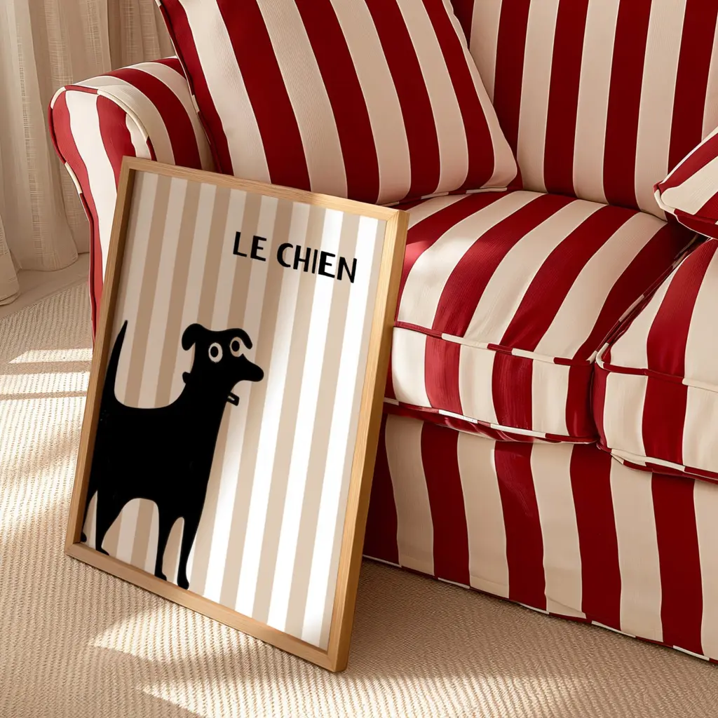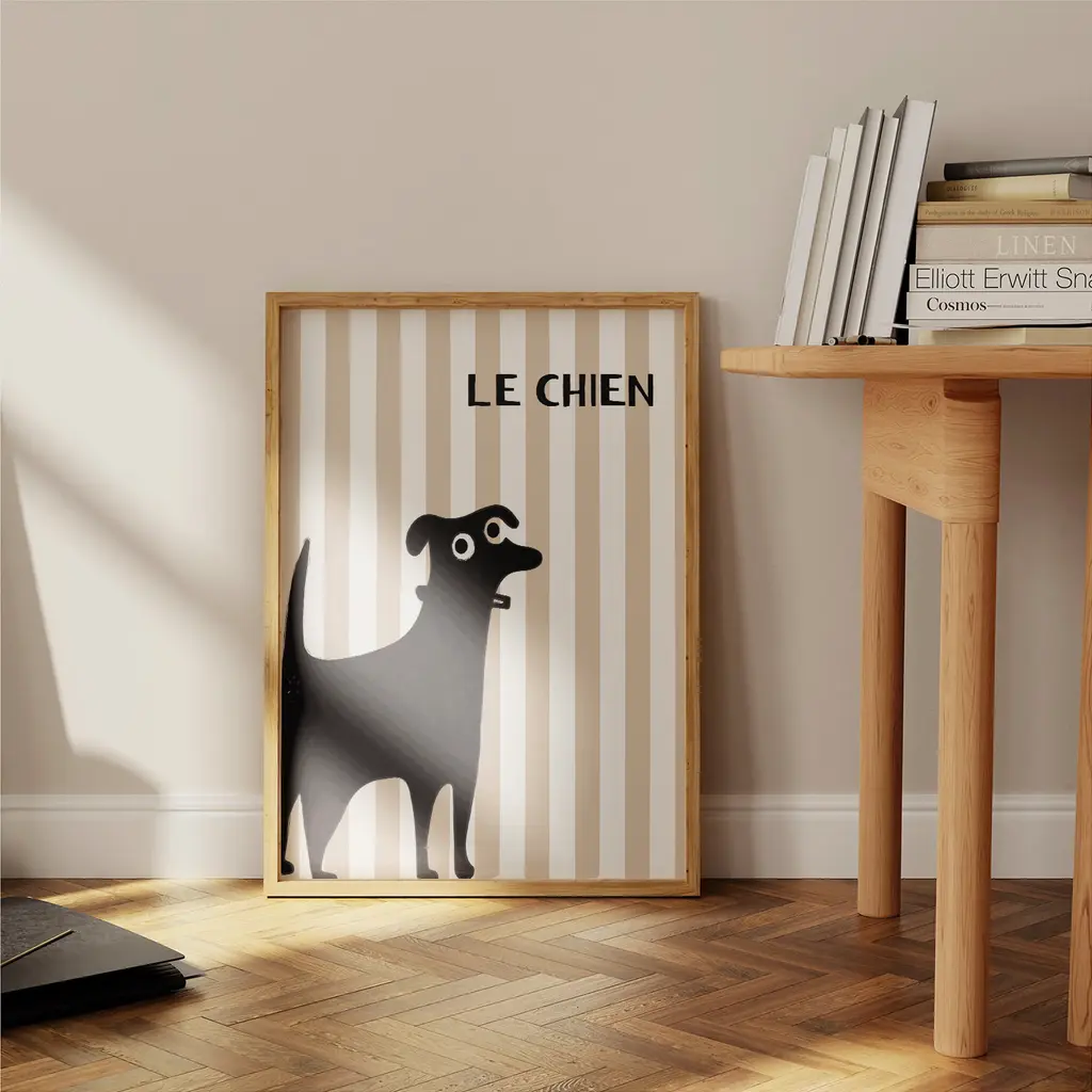 Our Le Chien striped brown illustrated art print is the perfect playful piece for any dog obsessed, add a bit of retro to your walls whilst playing homage to your favourite animals. Pair with green plants and teak furniture for a mid century sophistication. Sold without frameGiclée printed on Munken pure smooth cream paper which is certified by the Rainforest Alliance Program for FSC® Standards.Designed by Fanclub owners and sisters, Johanna and Felicity in our UK studio.