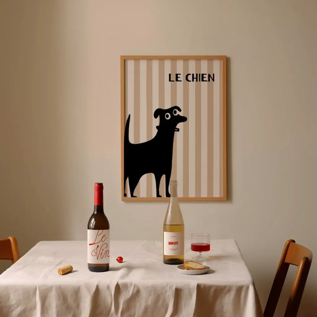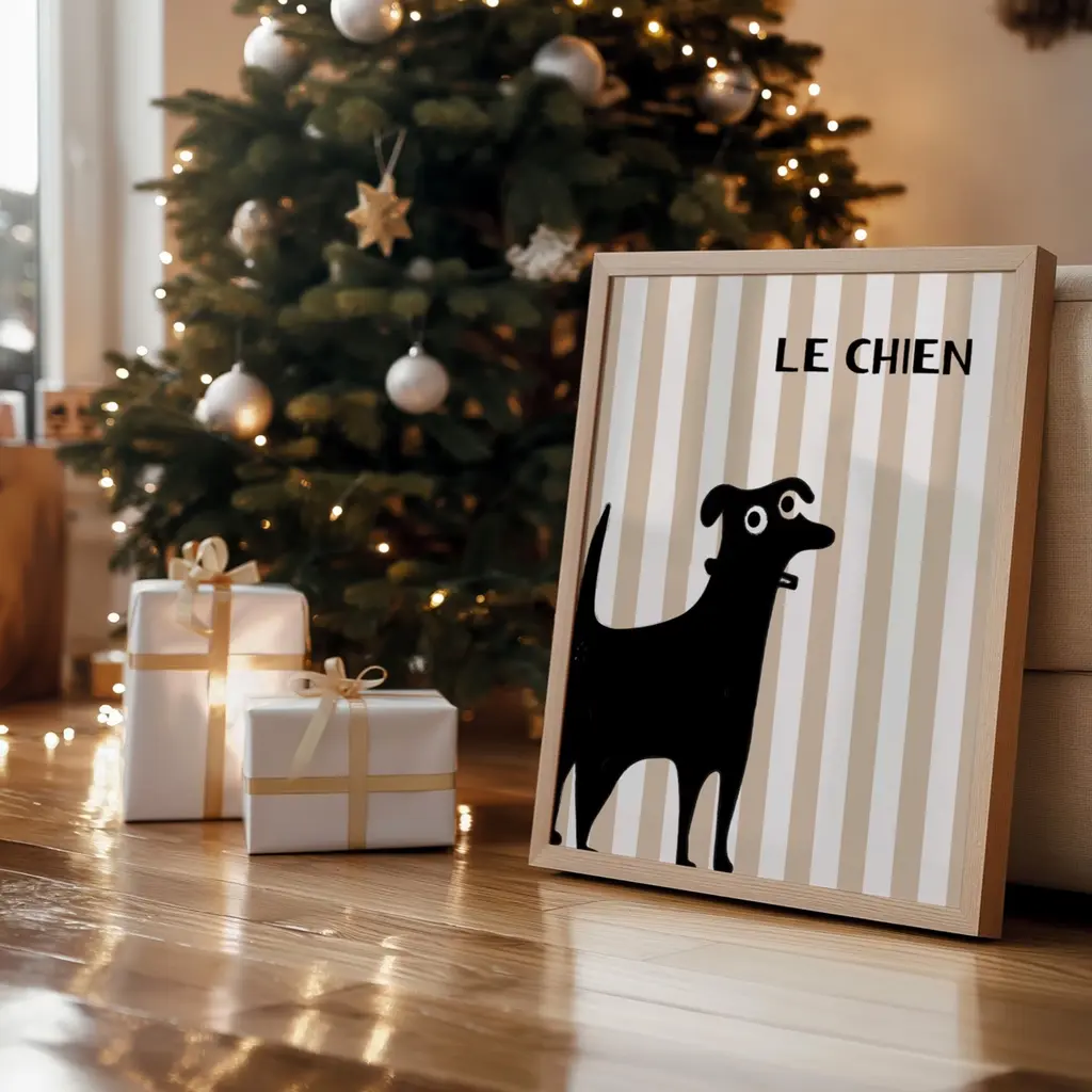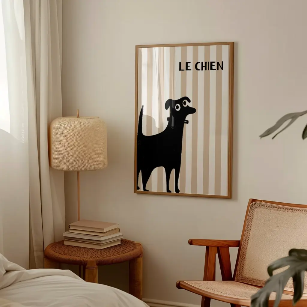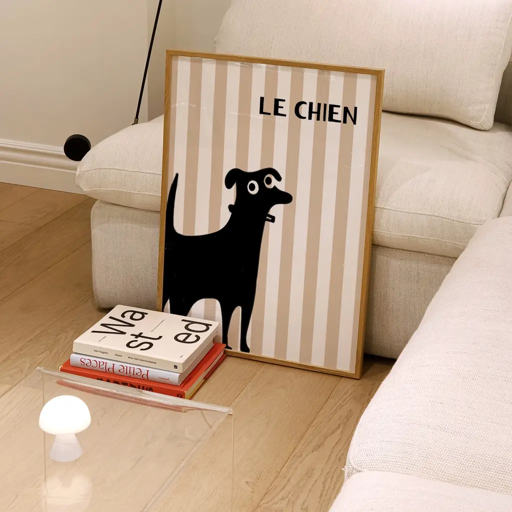Le Chien Dog Pet Animal Striped Retro Art Print