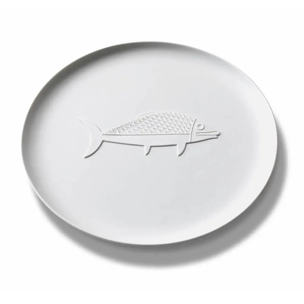 TRay designed by Cassina in collaboration with Ginori 1735 and the Le Corbusier Foundation in 2020.Manufactured by Cassina in Italy.Cassina takes its inspiration from the genius of Le Corbusier for a collection of three trays in pure, unglazed porcelain. These trays borrow some of the bas-relief symbols chosen for the walls of the buildings of Chandigarh, the city designed in the 1950s and now a UNESCO World Heritage Site. The same procedure can be seen in Marseille in the Unité d’Habitation on the sculptures moulées, symbolic designs embedded by Le Corbusier in the concrete – béton brut – taken from his figurative portfolio. Each tray, made by Ginori 1735, includes a design sketched by the Master in 1956: the open hand symbolising peace (square tray with rounded corners), the fish (round tray), the movement of the sun (rectangular tray).Production delay:8-9 weeksImportant information regarding images of products:Please note that some of the images show other colors and variations of the model, these images are only to present interior design proposals. The item that is selling is on the first image. Important information regarding color(s) of products:Actual colors may vary. This is due to the fact that every computer monitor, laptop, tablet and phone screen has a different capability to display colors and that everyone sees these colors differently. We try to edit our photos to show all of our products as life-like as possible, but please understand the actual color may vary slightly from your monitorAbout the designer:Charles-Edouard Jeanneret, known as Le Corbusier, was born in La Chauxde-Fonds, in the Swiss Canton of Jura, in 1887; and died in France, in Roquebrune-CAP-Martin, on the French Côte d'Azur, in 1965.At the beginning of his career, his work was greeted with some reluctance due to its supposed "revolutionary" character and the radical aspect it acquired through his "purist" experiments; In any case, already at that time, he received the recognition he deserved and the admiration of the majority. His message is still being assimilated by an increasing number of people in the profession, but his eccentric avant-garde attitude should be properly taken into account for the use of rational systems in his planning method, as reflected in extremely simple modules and forms based on functional logic."A functionalism that does not tend to exalt the mechanical function to the detriment of the symbolic but rather to the rejection of the symbol, which he now considers obsolete and insignificant, and the recovery of the practical function as a symbol of new values" (¹)In his activities as an urban planner, architect and designer, his method of study continued to develop, sometimes going from one extreme to another in a complex plastic language. Some examples of this are:Unité d'Habitation, Marseille (1946-52);the Chapel in Ronchamp (1950-55);the Dominican Monastery «La Tourette» (1951-56);the Zurich Center (1964-65)the Hospital in Venice (1965).The same dedication will be found in the design of diverse furniture, such as: the furniture of "Equipement intérieur de la maison" (tables, chairs, sofas and armchairs) designed for the Salon d'Automne in 1928 with Pierre Jeanneret and Charlotte Perriand and “Casiers Standard”, a system of modular units designed for the Esprit Nouveau Pavilion in 1925 in collaboration with Pierre Jeanneret.Cassina reproposes these “updated” furniture; its clear and essential shape is easily adaptable according to time and environment, constantly providing new meanings.(¹) G.C. Argan, Figurative Art in the Universal Encyclopedia of Art, vol. 1, col. 760About the manufacturer:In a continuing dialogue between past, present, and future, Cassina has created the I Maestri collection, revisiting furnishing designs by the 20th century’s best-known architects, including Le Corbusier, Pierre Jeanneret, Charlotte Perriand, Charles Rennie Mackintosh, Gerrit Thomas Rietveld, Franco Albini, Frank Lloyd Wright and Marco Zanuso. While the designs and functional concepts have been precisely preserved, the models have been manufactured using evolved technology. This is also the company that has manufactured iconic pieces of contemporary design from the 1950s to the present day, ideated by some of the most important international designers. Today Cassina continues to look to the future of design with audacious, passionate curiosity and an open, holistic approach. It affirms its exclusive ability to furnish a home’s living and dining spaces completely and iconically with The Cassina Perspective: a concept, a philosophy, an informed, futuristic thought. A detailed, expansive horizon of combinations; when placed together, the products have an innovative soul and the modern icons create authentic, welcoming, personal atmospheres involved in a conversation dominated by a code of design excellence, formal sensitive awareness, solidity and cultural authority..