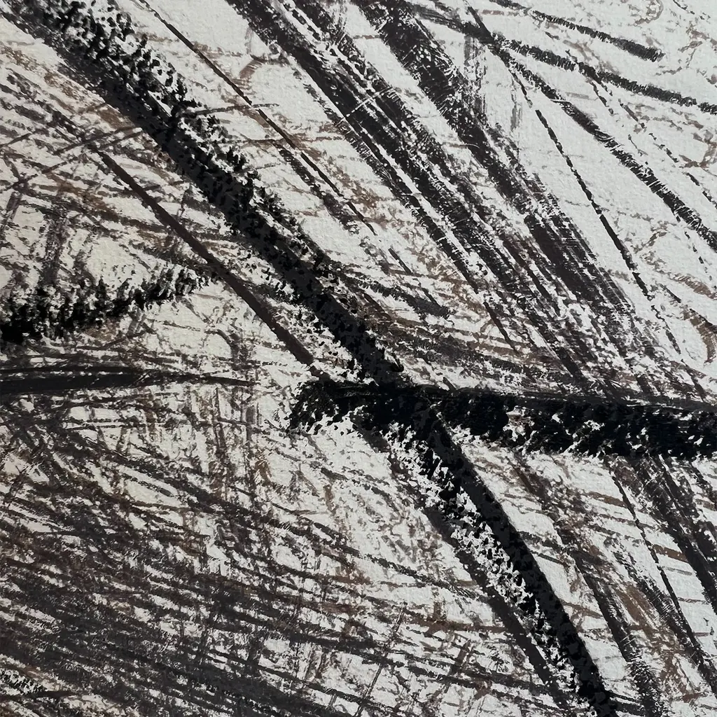 Introducing "Le Fourré Un" (The Thicket #1) - The very first design from our 3 part, limited release art print series. Le Fourré is a stunning piece when hung alone, or paired with the other 2 prints in the triptych series. Crafted with a meticulous blend of charcoal, oil stick, and graphite, these black and white abstract pieces evoke a sense of enigmatic beauty. Each stroke weaves a tale of tangled depths and hidden secrets, akin to wandering through a dense thicket where shadows intertwine with light. The dynamic interplay of monochromatic tones and textures creates an ethereal visual journey.