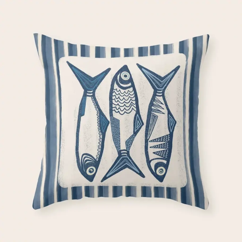 Le Sardine Retro Inspired Art Print Throw Pillow