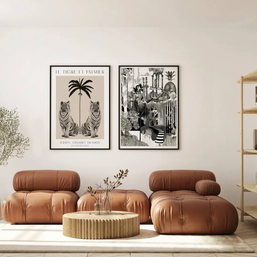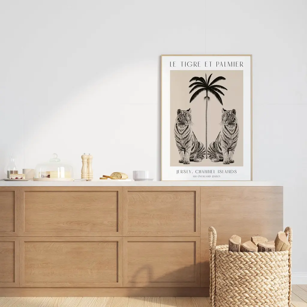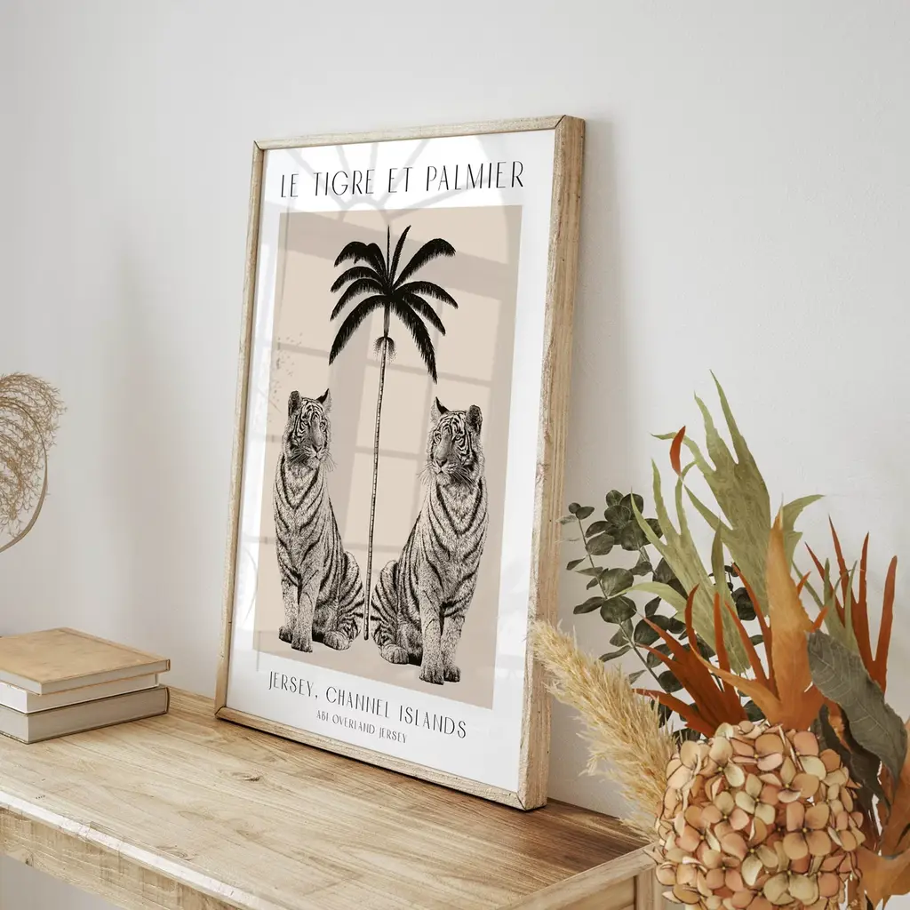 Poster style Giclee fine art print illustrated by Abi Overland.Combining typography with illustration, this poster-style art print serves to elevate any space with intrigue and a hint of nostalgic joy. The intricately illustrated tigers and palm trees evoke the classical botanical illustrations of the Victorian era adding a sense of mystery and adventure. The perfect finishing touch for any stylish home interior combining fresh and modern typography and intricate hand-drawn elements.