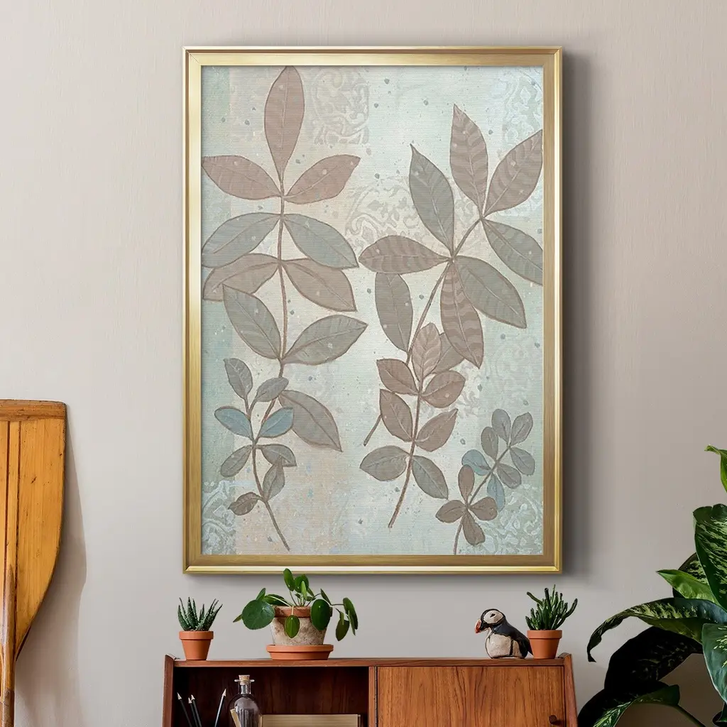 Leaf Cluster I Premium Framed Print - Ready to Hang A Premium Framed Print created to last. Framed in distressed wood and available in an array of sizes and colors Featuring a beveled a solid wood stretcher bar, each piece comes ready to hand 4 SIZES AVAILABLE 30.5''X42.5'' - Overall Size 26.5'X36.5'' - Overall Size 22.5''x30.5'' - Overall Size 18.5''x24.5'' - Overall Size Each piece is made to order. Each piece comes with hanging hardware. Made in the USA Ready to Hang