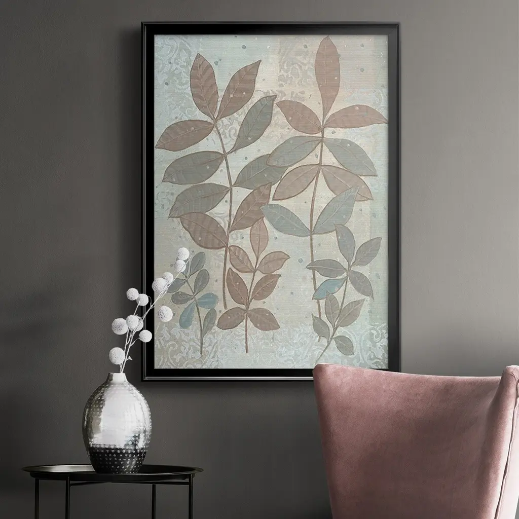 Leaf Cluster II Premium Framed Print - Ready to Hang A Premium Framed Print created to last. Framed in distressed wood and available in an array of sizes and colors Featuring a beveled a solid wood stretcher bar, each piece comes ready to hand 4 SIZES AVAILABLE 30.5''X42.5'' - Overall Size 26.5'X36.5'' - Overall Size 22.5''x30.5'' - Overall Size 18.5''x24.5'' - Overall Size Each piece is made to order. Each piece comes with hanging hardware. Made in the USA Ready to Hang